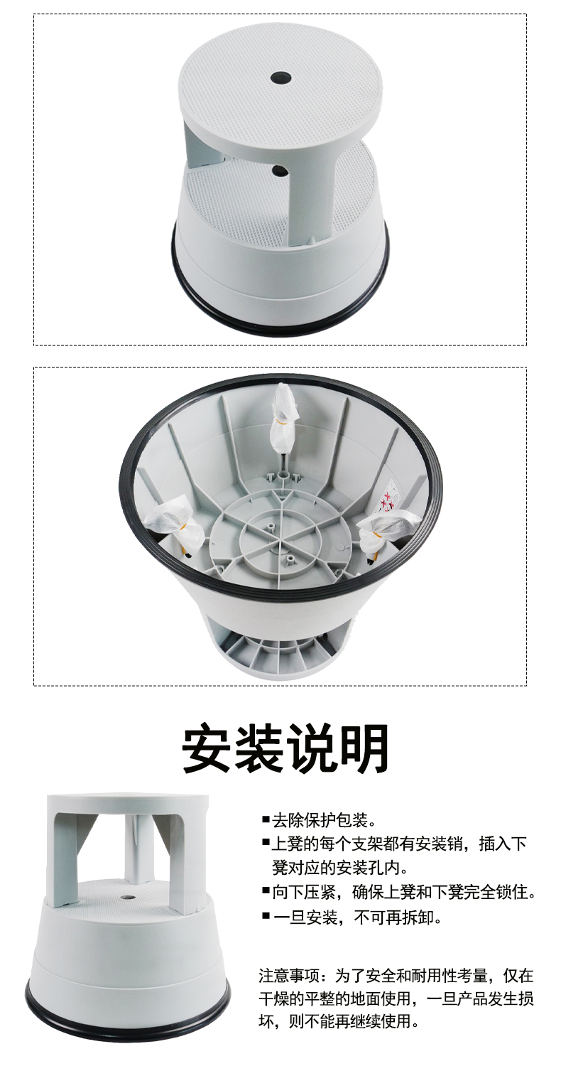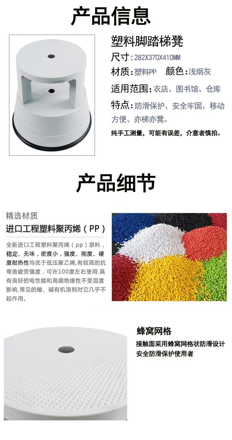海斯迪克 脚踏梯凳 KC20 PP 浅烟灰 282*370*410mm 1件