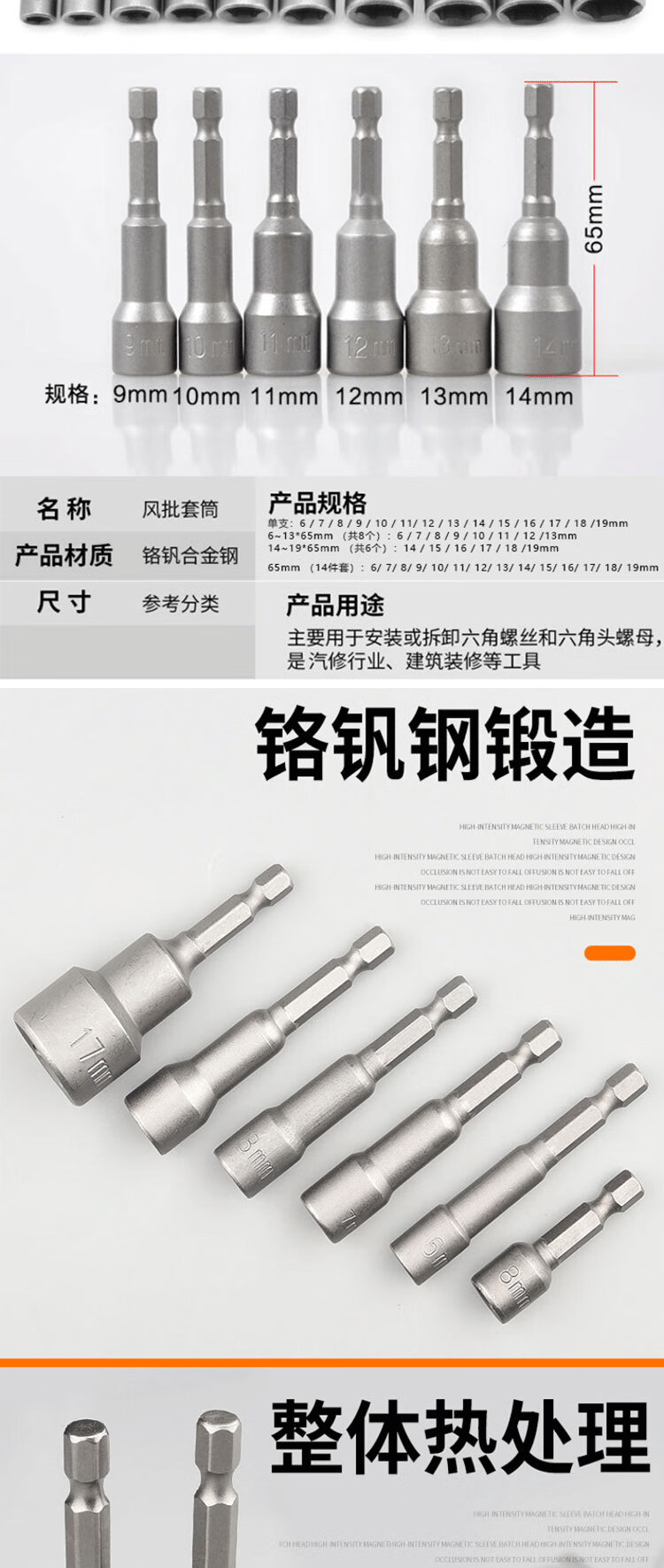 海斯迪克 高硬度强磁性套筒 KK37-11 16*65mm 1个