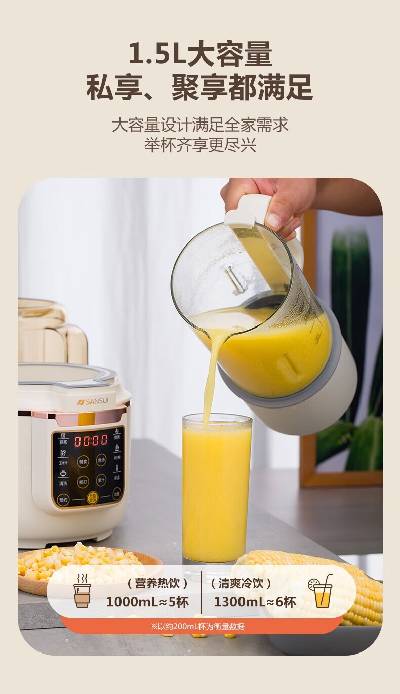 山水 静音破壁机 SJ-5219 1.5L 浅黄色 1台