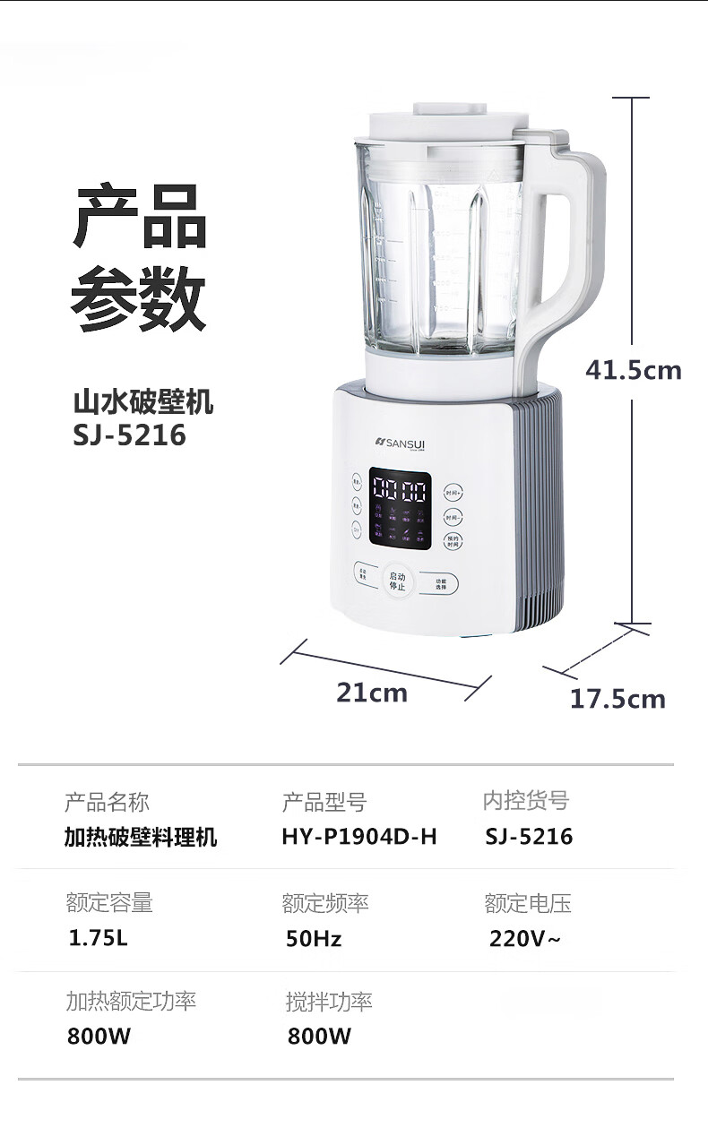 山水 智能加热破壁料理机 SJ-5216 1.75L 1台
