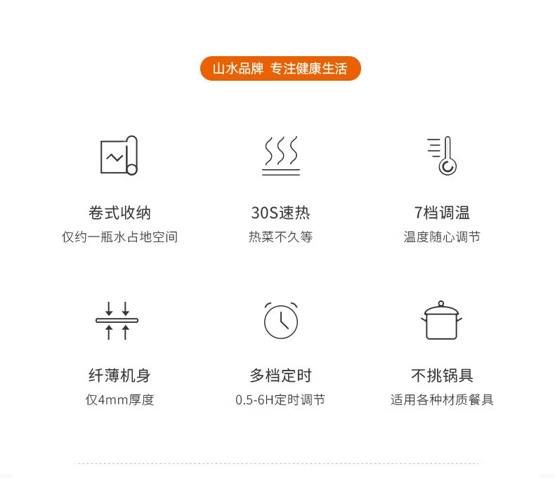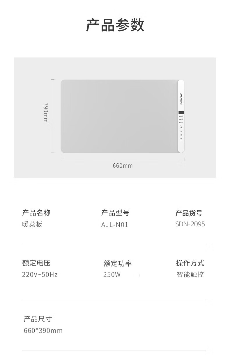 山水 可收纳柔性暖菜板 SDN-2095 660*390mm 智能触控 1个