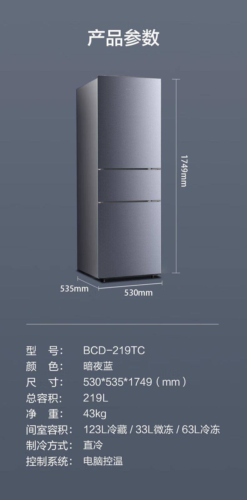 创维 三门冰箱 BCD-219TC 二级能效 219L 1台