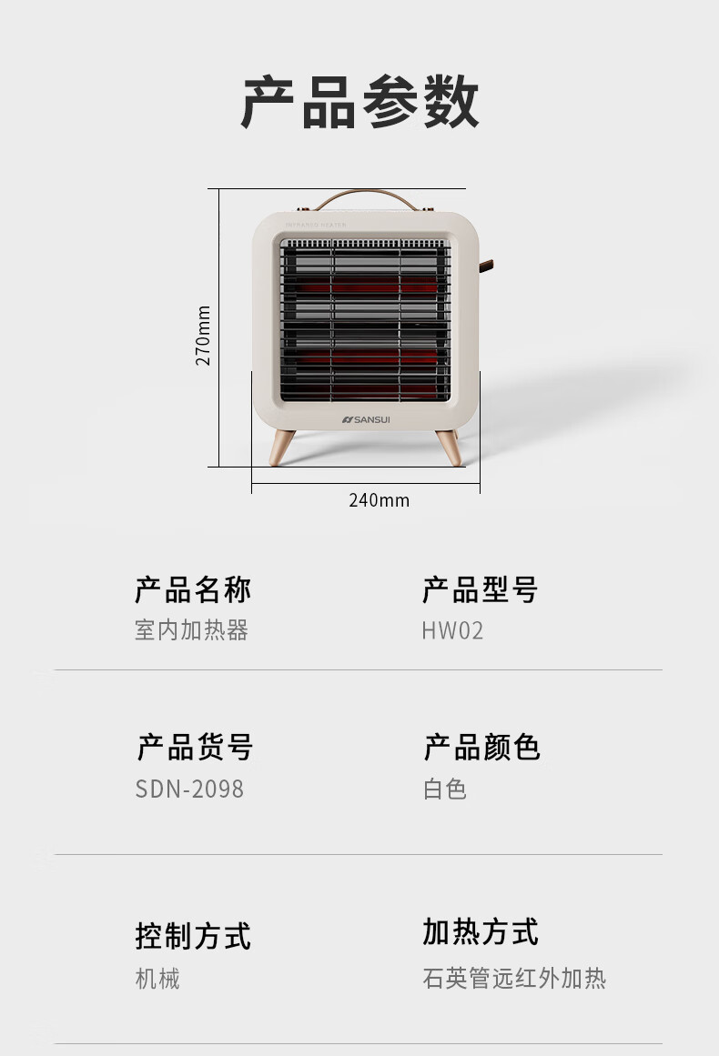 山水 大红管远红外加热取暖器 SDN-2098 机械式 550W 1台