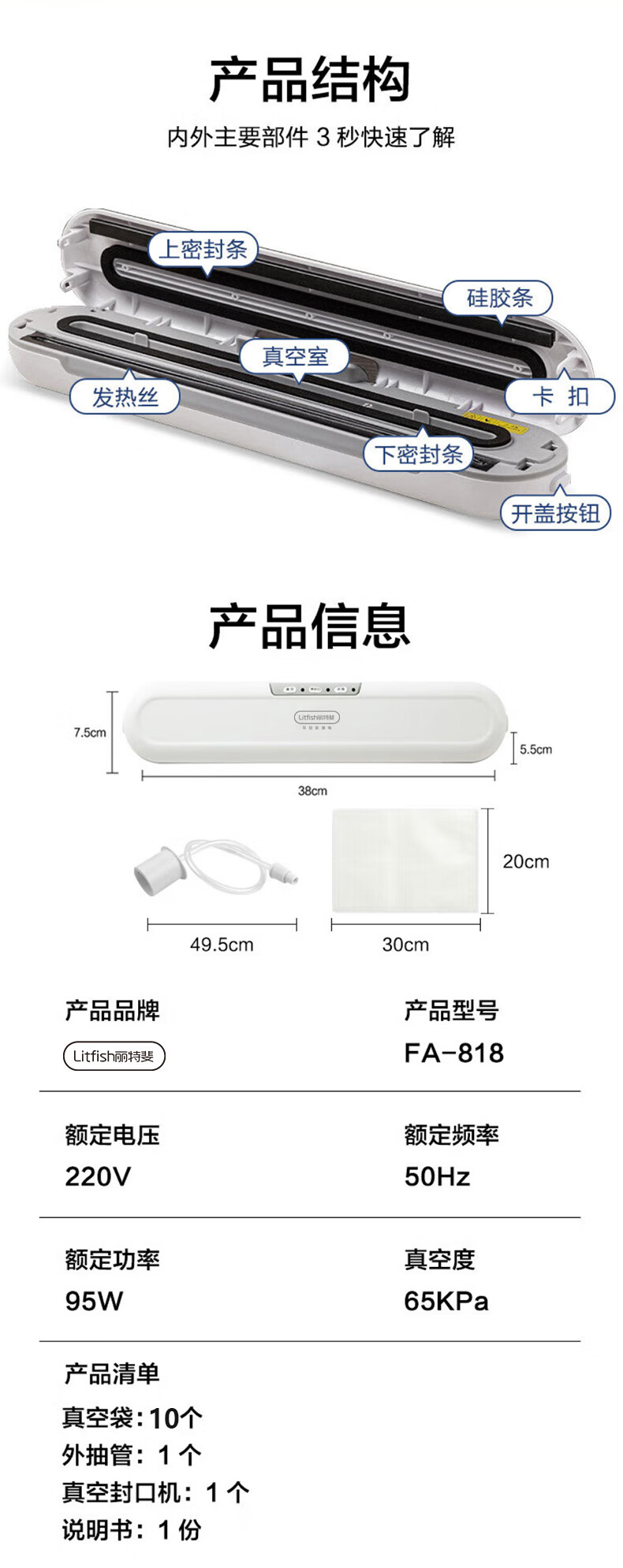 丽特斐 家用真空封口机 FA-818 65KPa 1个