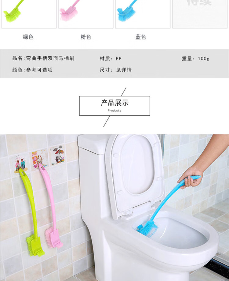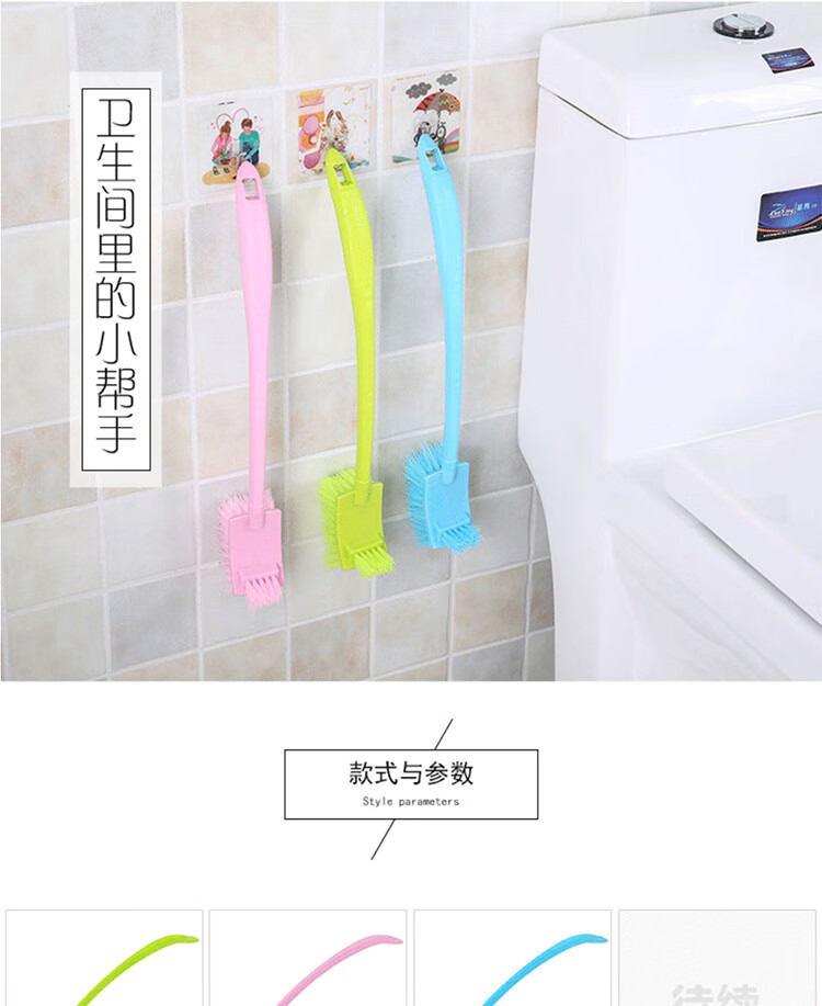 海斯迪克 塑料长柄马桶刷 KQ135-2 双面款颜色随机 10把 1件