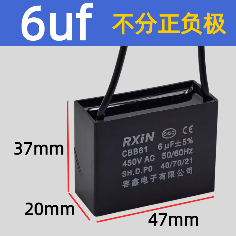 容鑫 电容 方形 CBB61 带线 6UF 450V 1个
