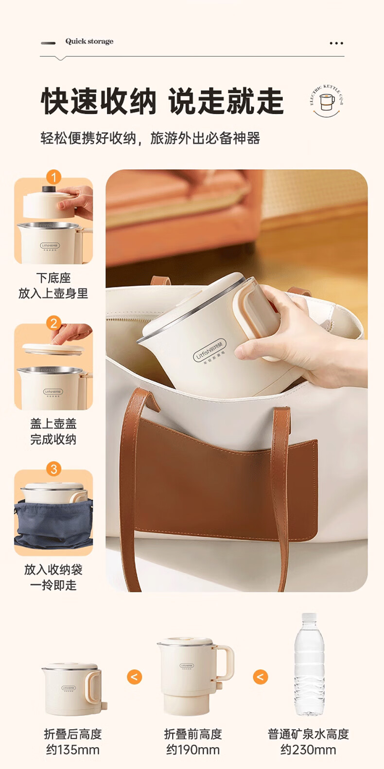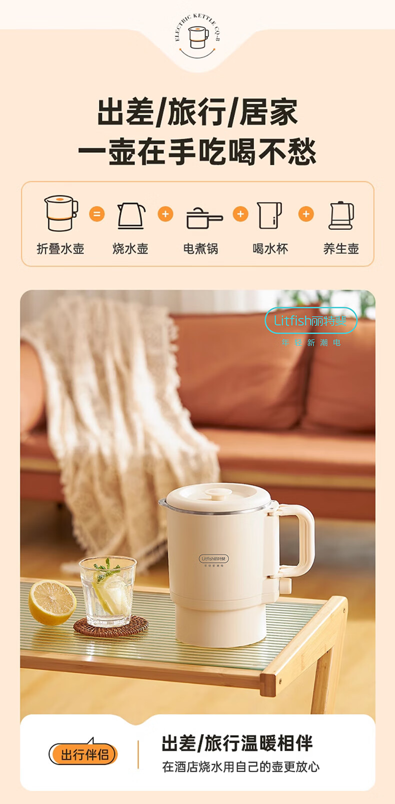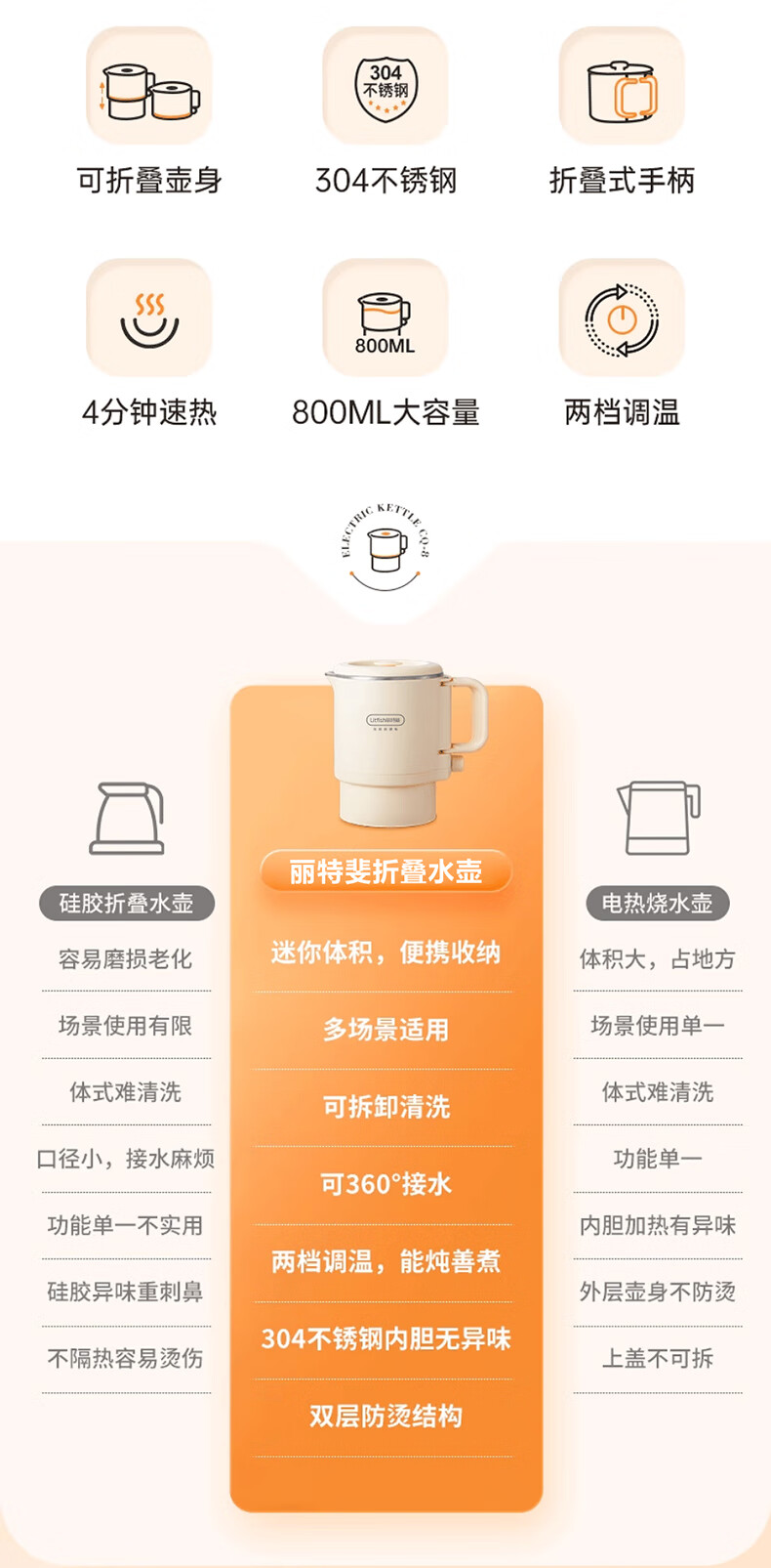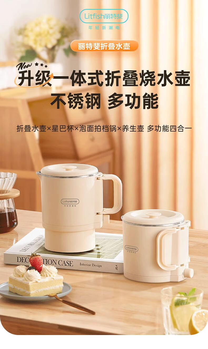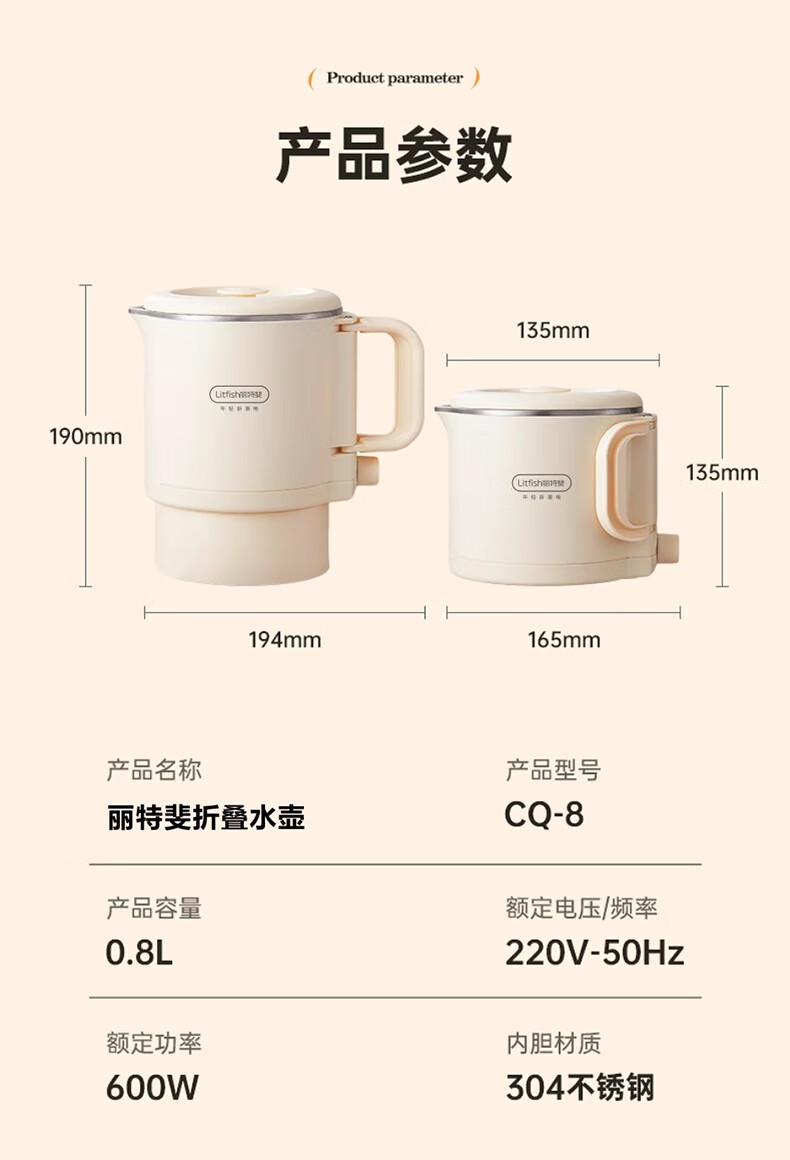 丽特斐 多功能不锈钢折叠水壶 CQ-8 米色 0.8L 1个