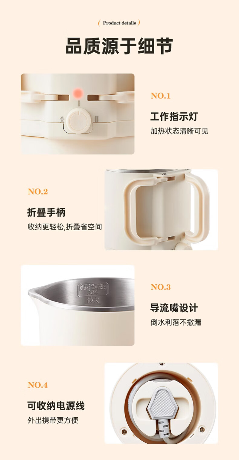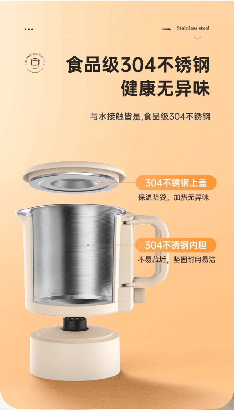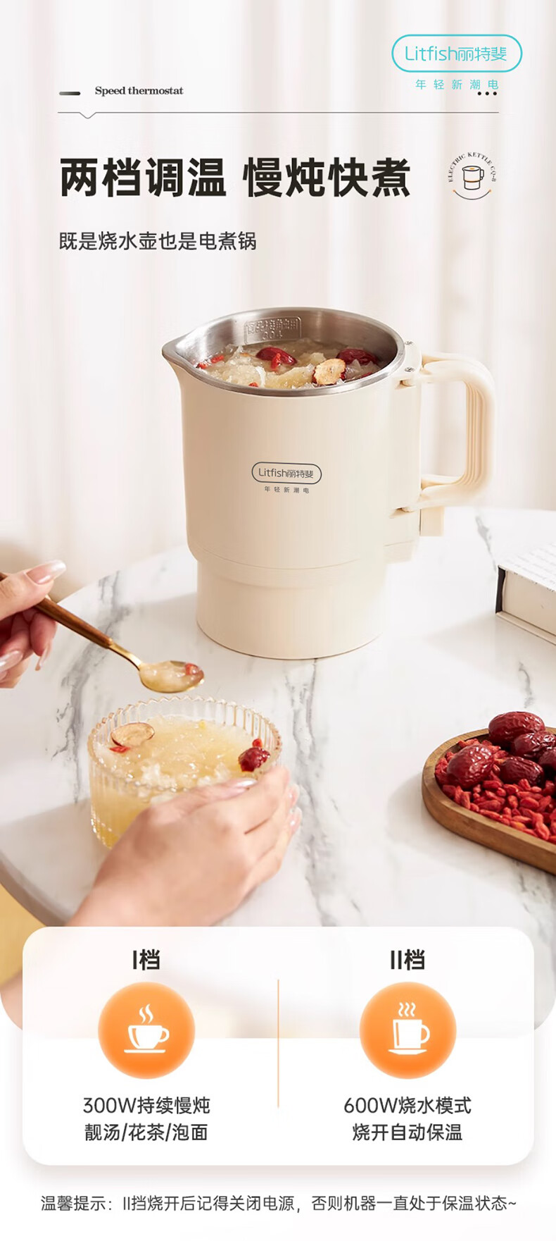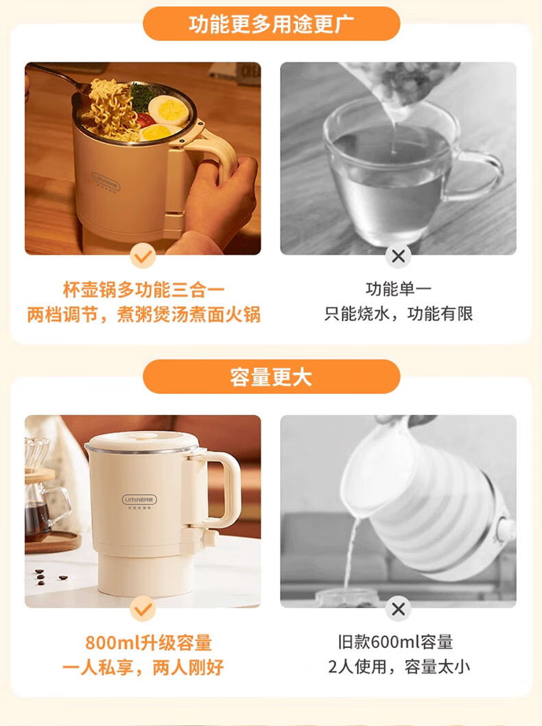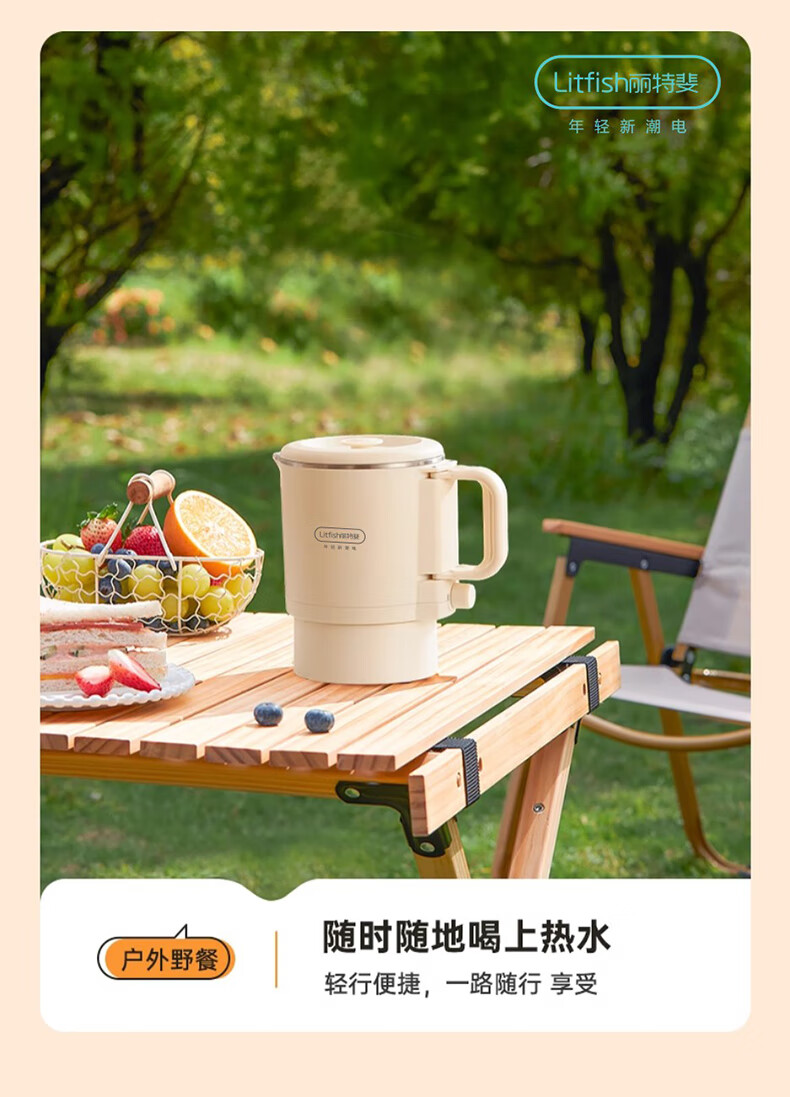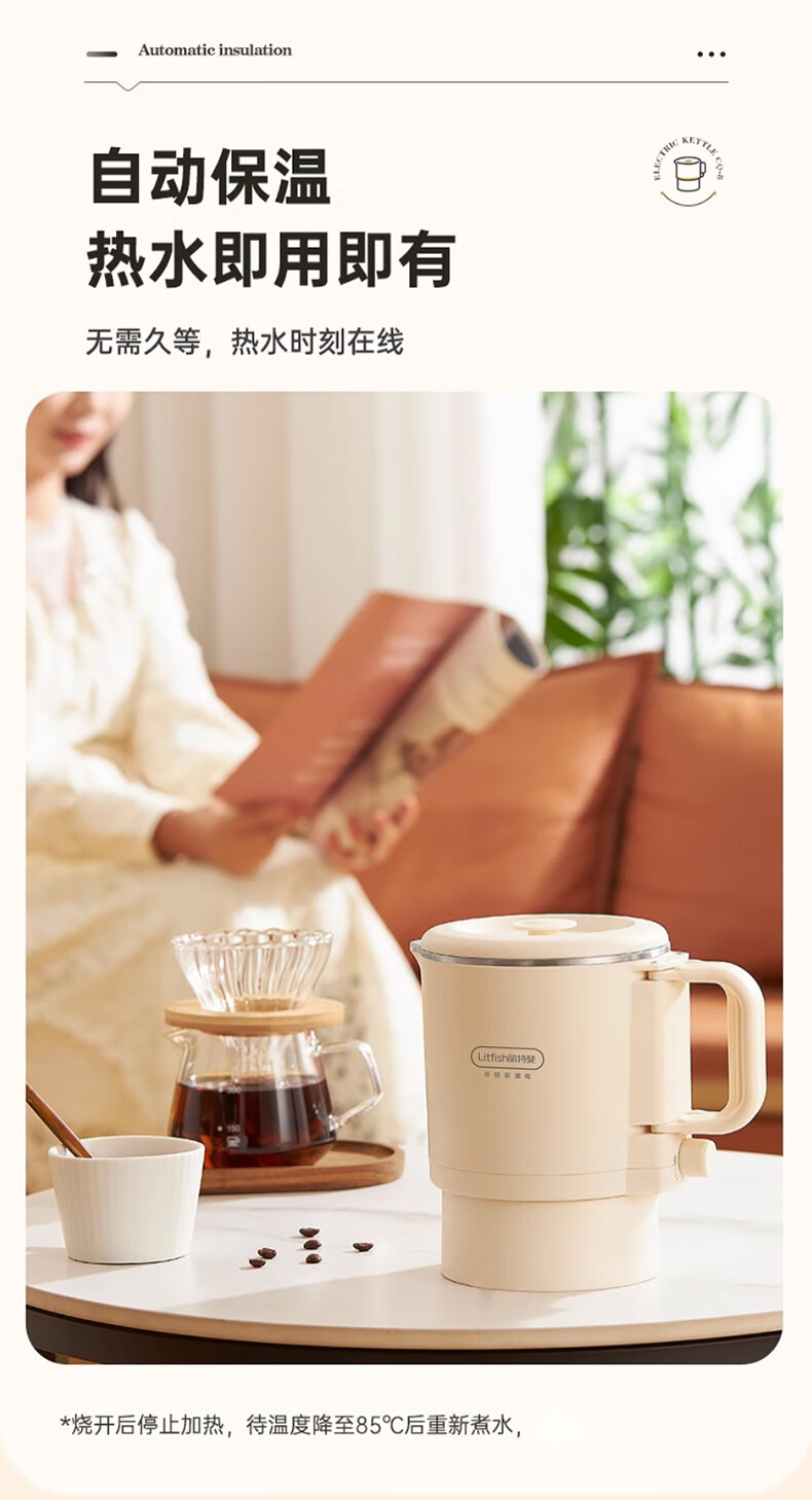 丽特斐 多功能不锈钢折叠水壶 CQ-8 米色 0.8L 1个