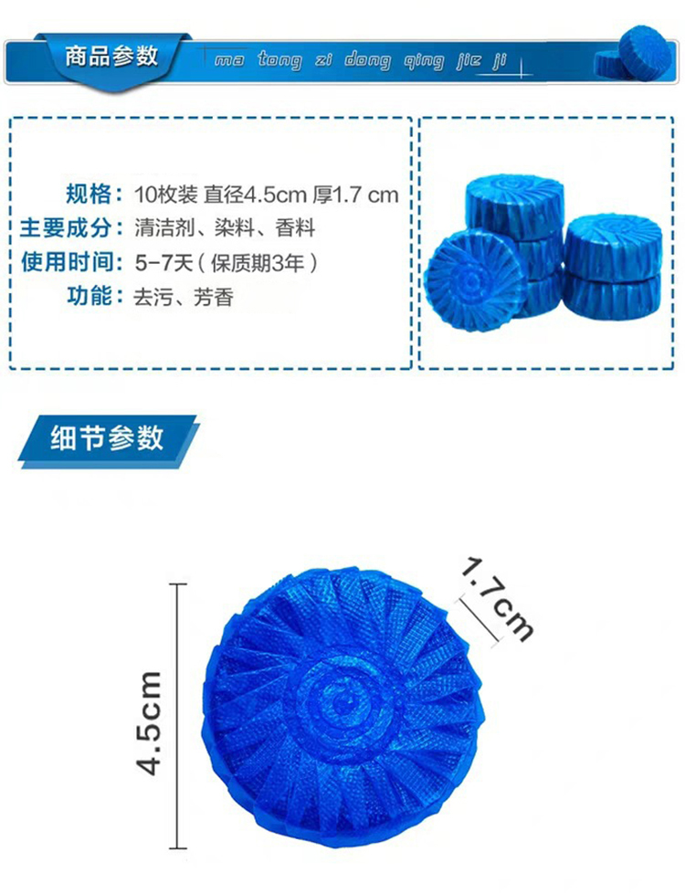 海斯迪克 清香型洁厕宝 KQ154-1 单色蓝泡泡块50g/个 10个 1包