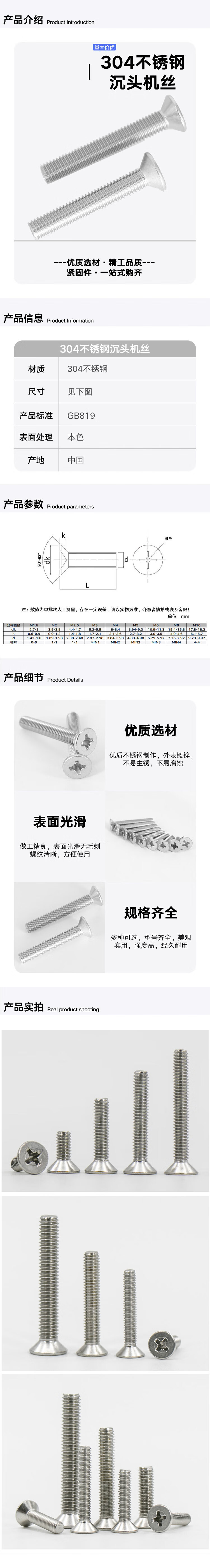 海斯迪克 304不锈钢十字槽沉头机丝 KJ8-14 GB819 全牙 本色 M1.4*4 500个 1包