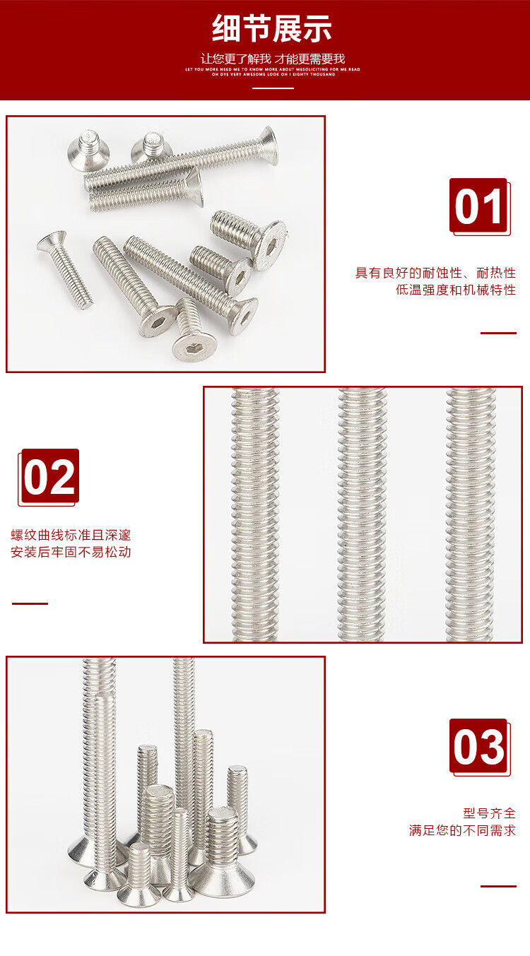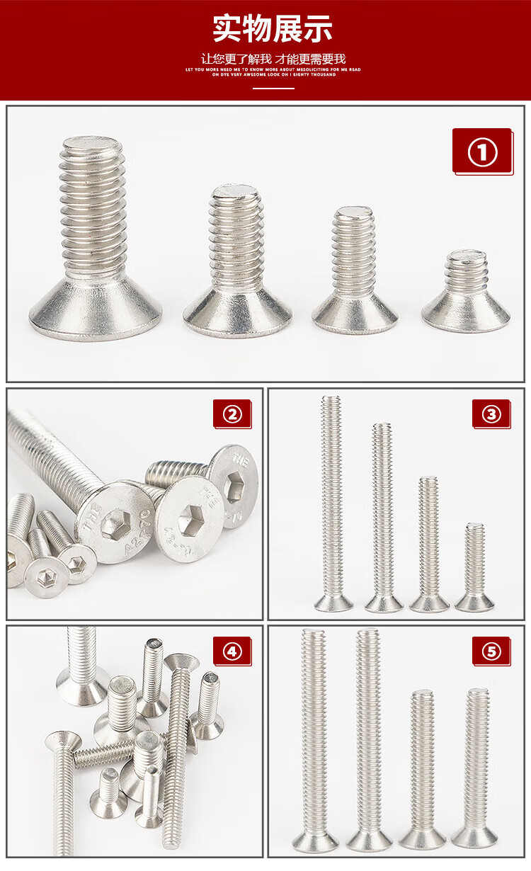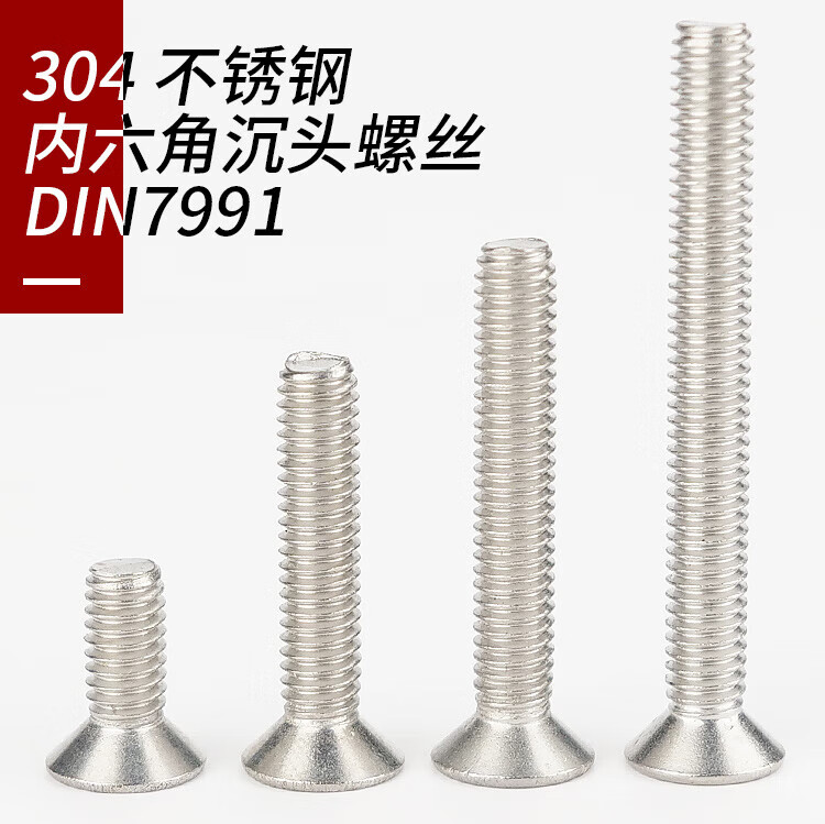 海斯迪克 304不锈钢沉头内六角螺丝 KJ9-67 DIN7991 全牙 本色 M5*8 100个 1包