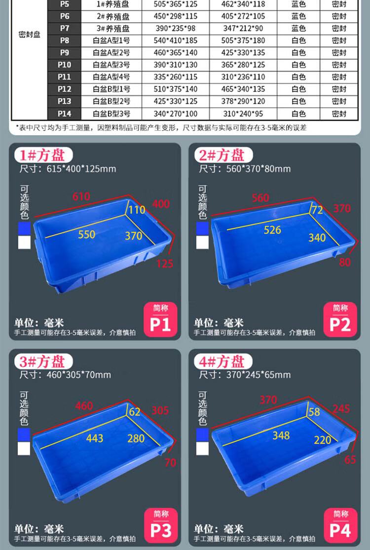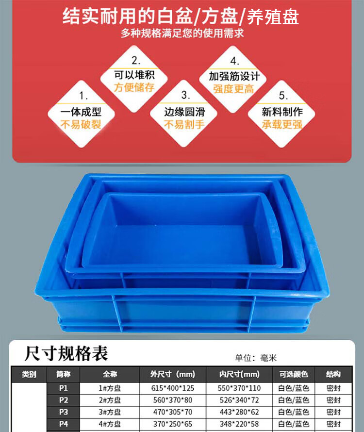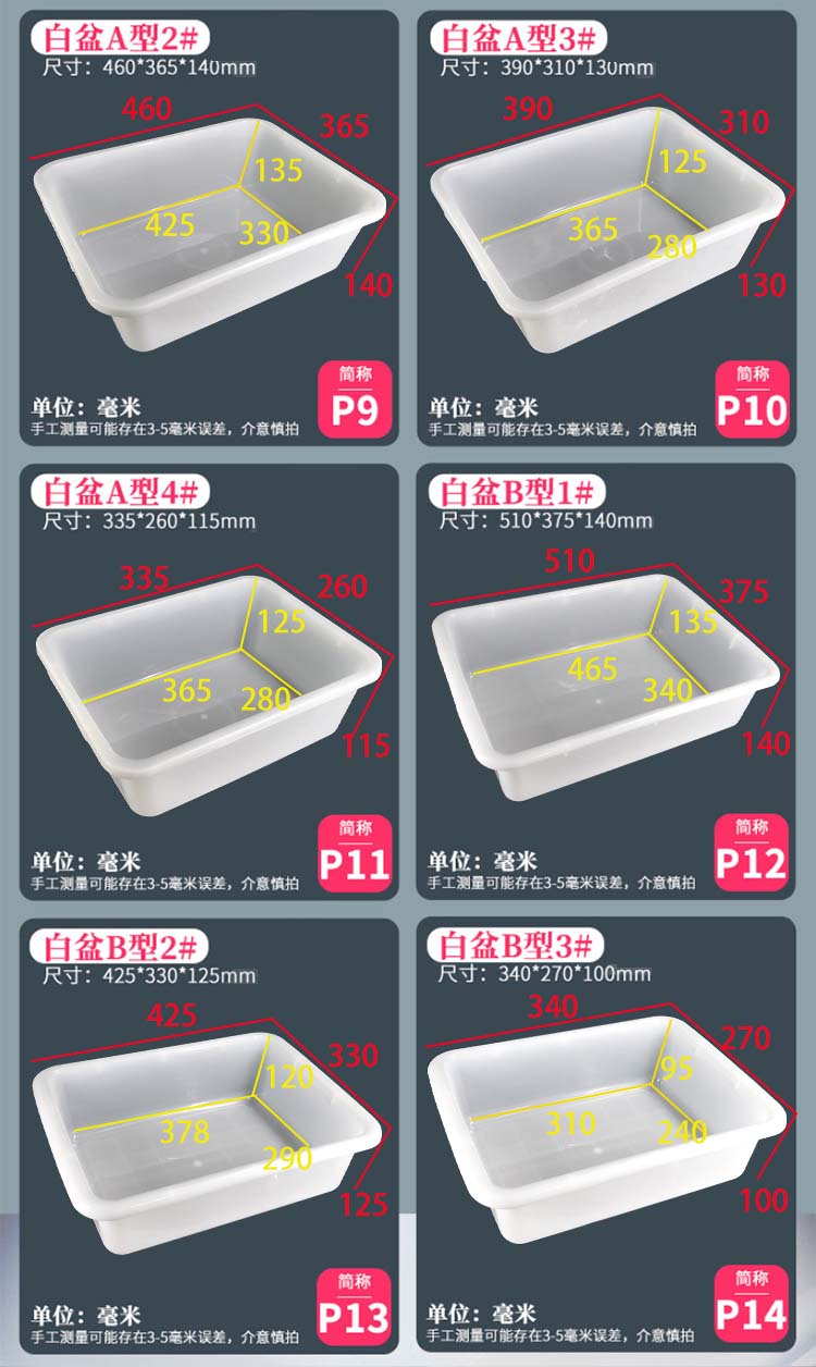 海斯迪克 加厚塑料方盘 KC39-7 白色 A型3号 390*310*130mm 1件