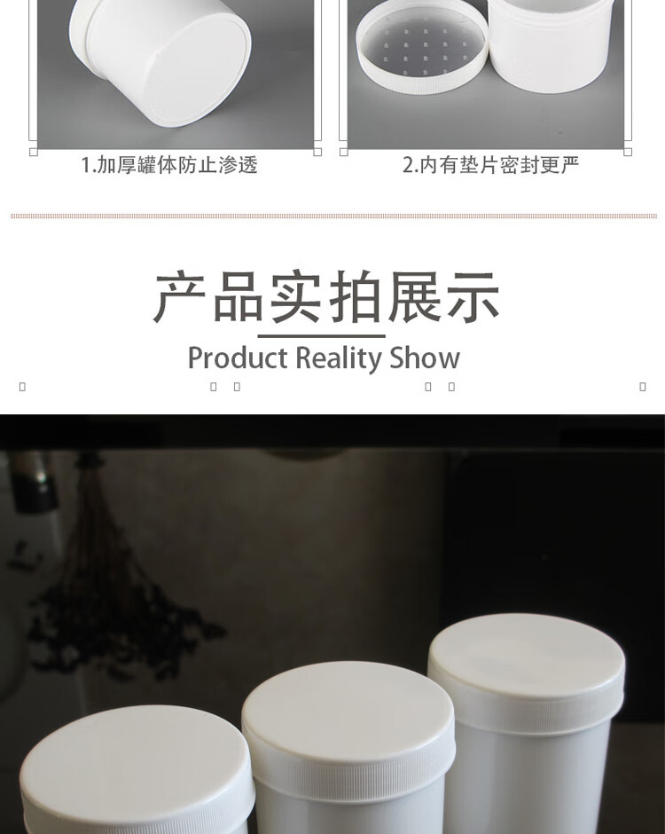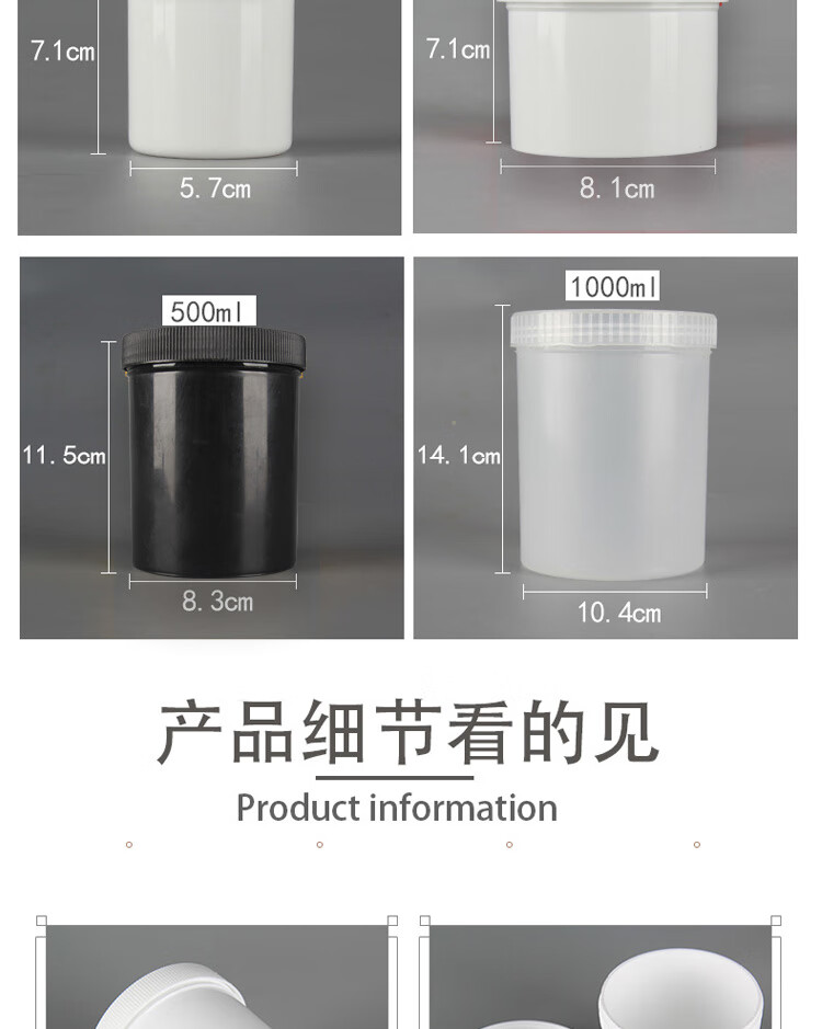 海斯迪克 广口密封罐 KC41-4 PP 白色 1000ml 141*104mm 1件
