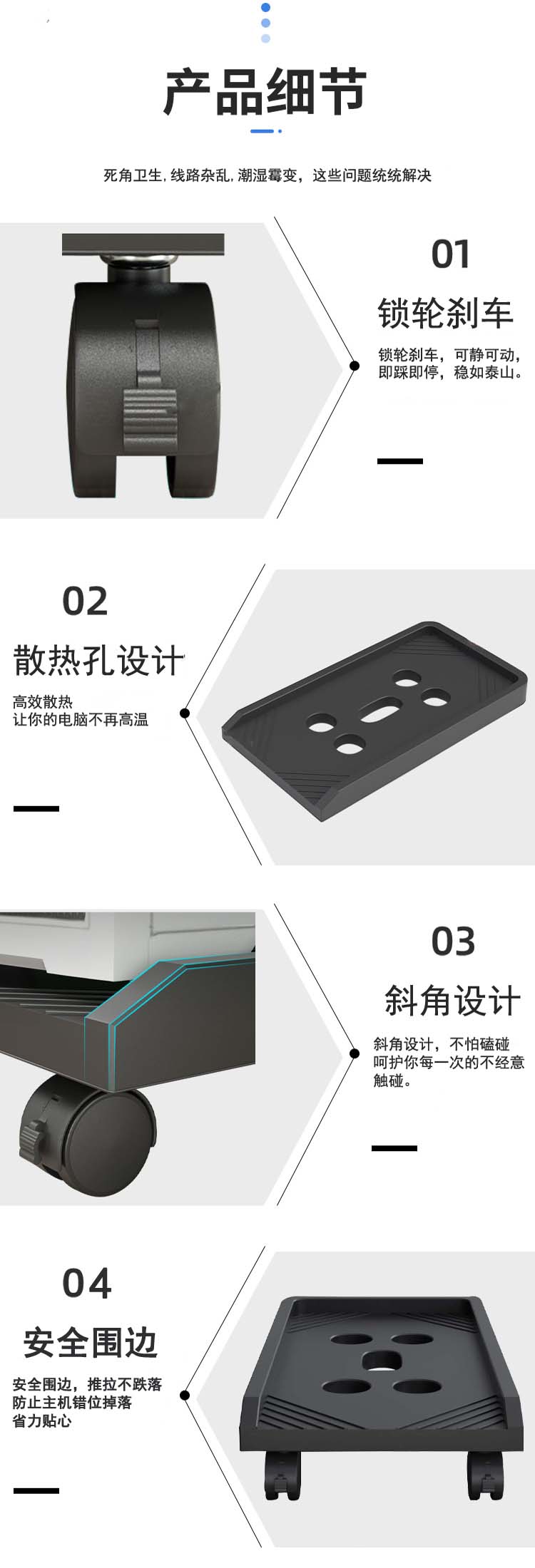 海斯迪克 电脑主机托架 KC43-2 浅杏 万向轮款 1件