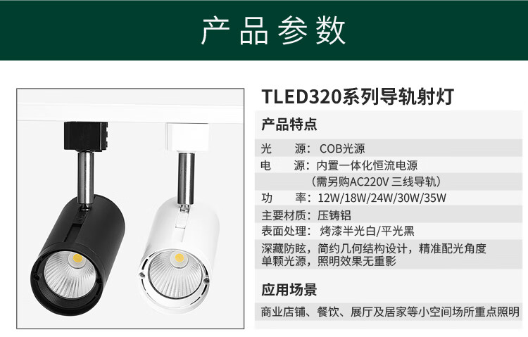 雷士 轨道射灯 TLED320FD 30W 黄光 白壳 1个