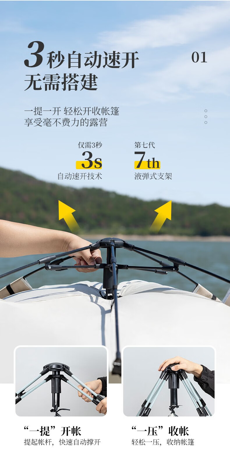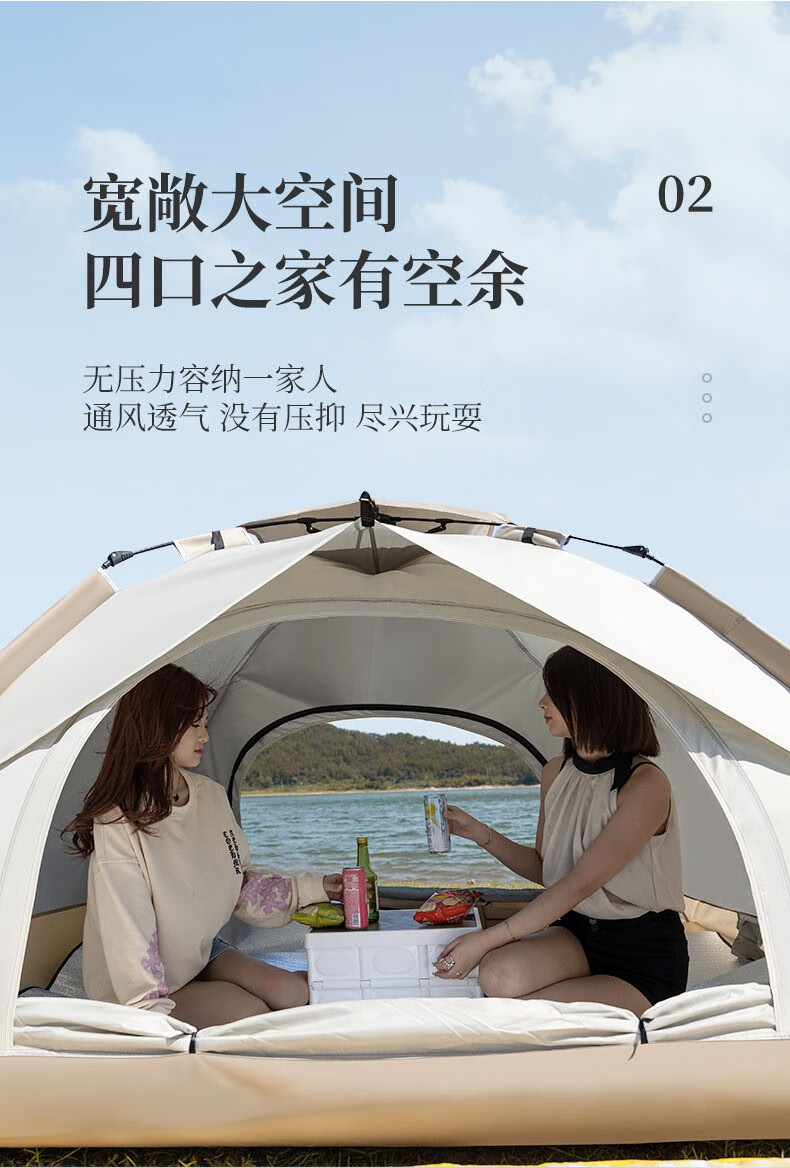 飞图乐 升级液压全自动帐篷 ZP0703 3-4人 米白色 1顶