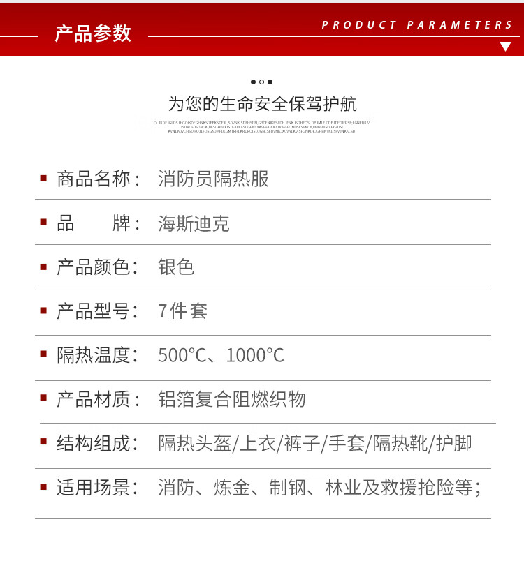海斯迪克 消防隔热服 KG69-3 7件套 1套