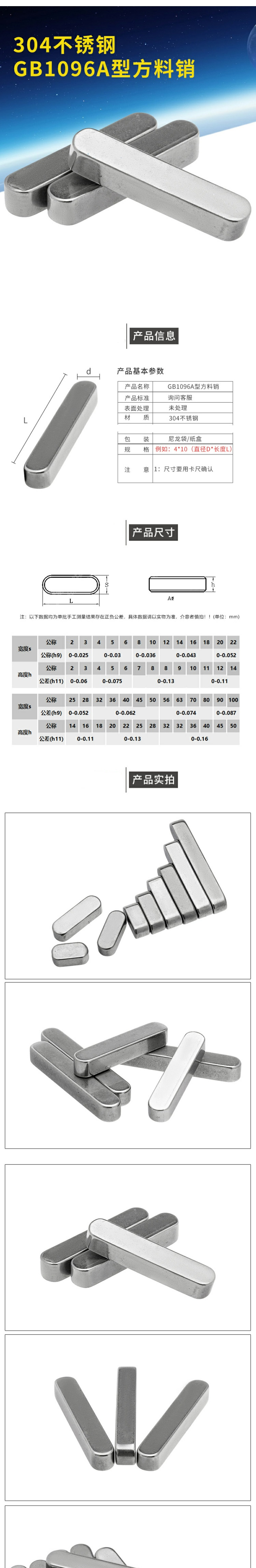 国产通用 304不锈钢平键 D10*8*45mm 1个