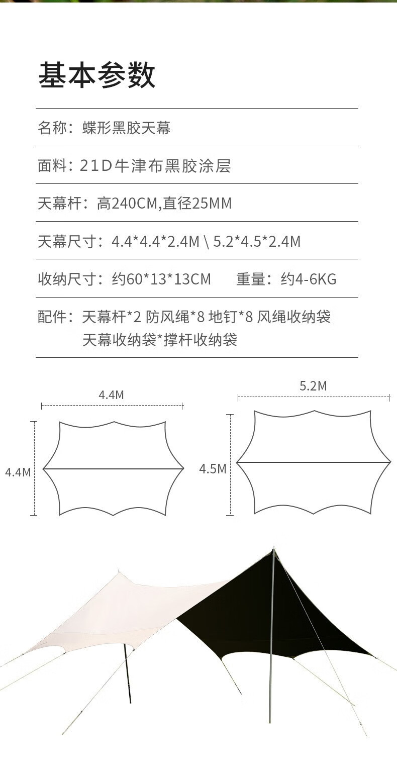 飞图乐 蝶形黑胶大天幕 TM0302 黑色 19㎡ 1顶