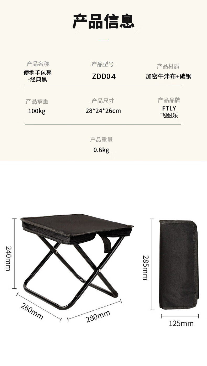 飞图乐 便携手包凳 ZDD04 黑色 24*26*28cm 1个