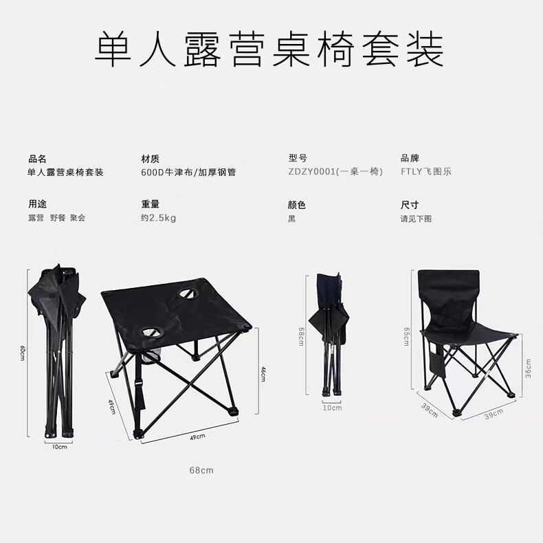 飞图乐 单人露营桌椅三件套 ZDZY0001 桌子(45*45*41cm)+椅子(65*39*39cm)+收纳袋 黑色 1套