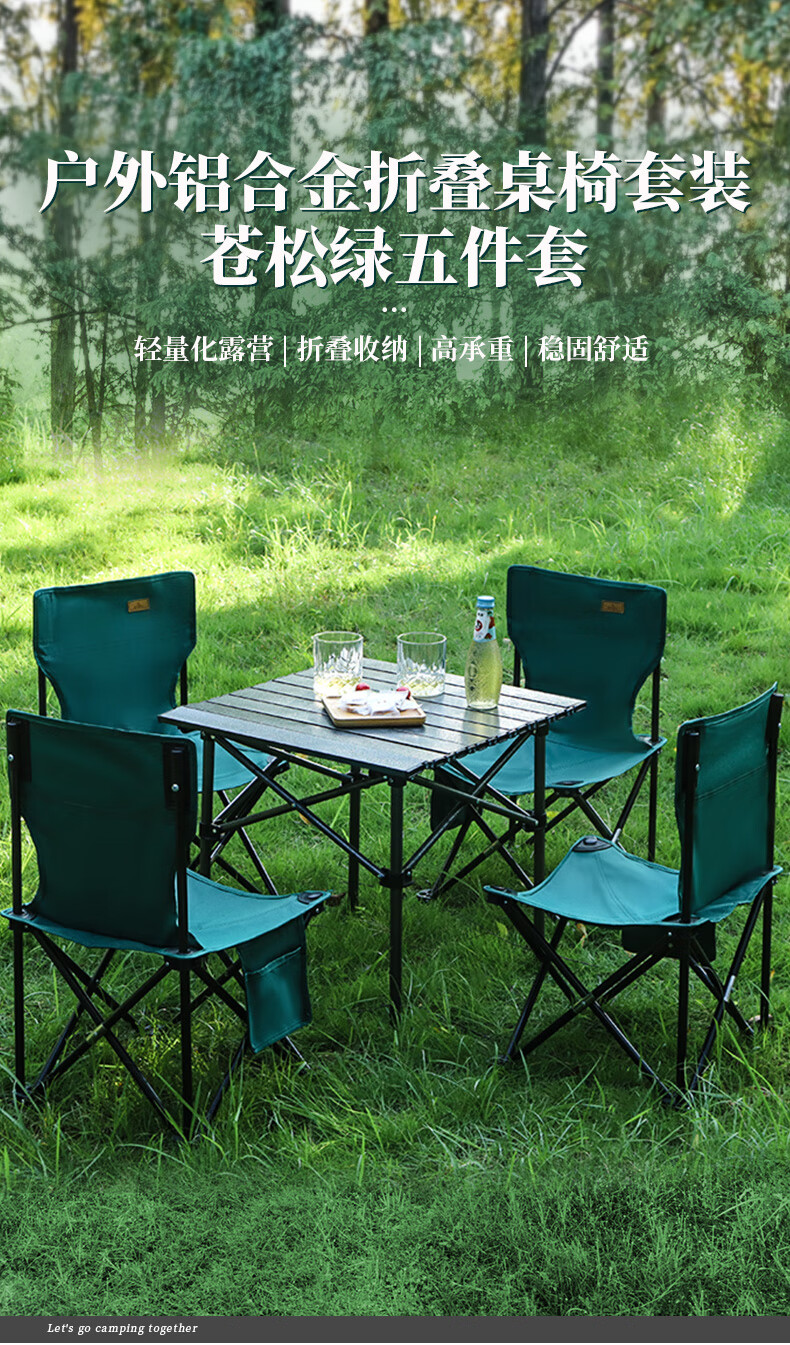 飞图乐 铝合金折叠桌椅方桌五件套 ZDZY1302 苍松绿 桌子(51*50*50cm)+椅子*4(60*36*36cm) 1套
