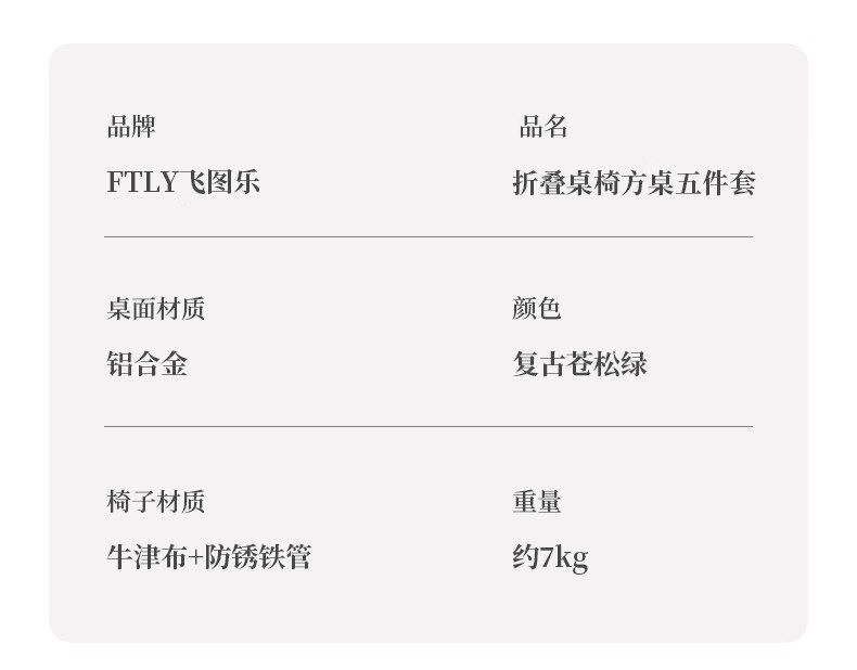 • 商品名称:飞图乐 铝合金折叠桌椅方桌五件套