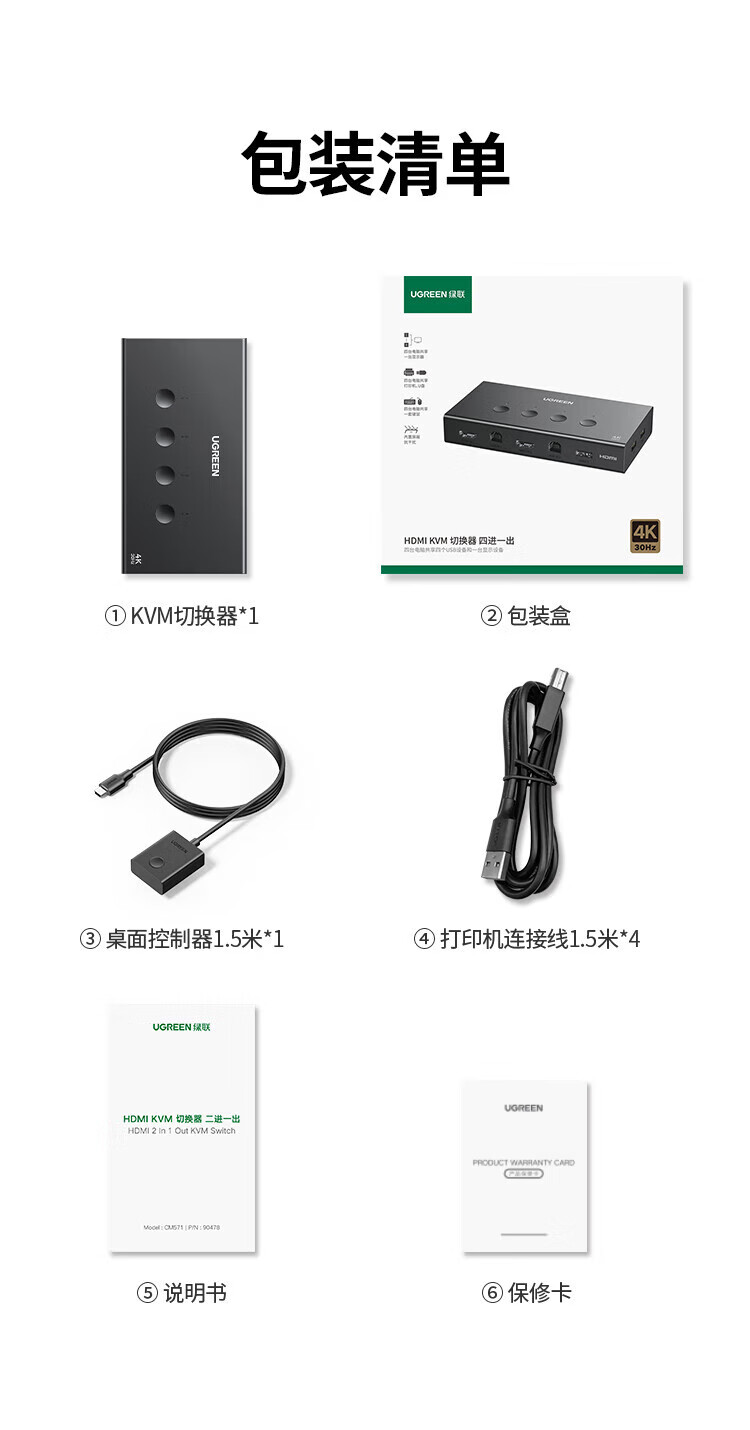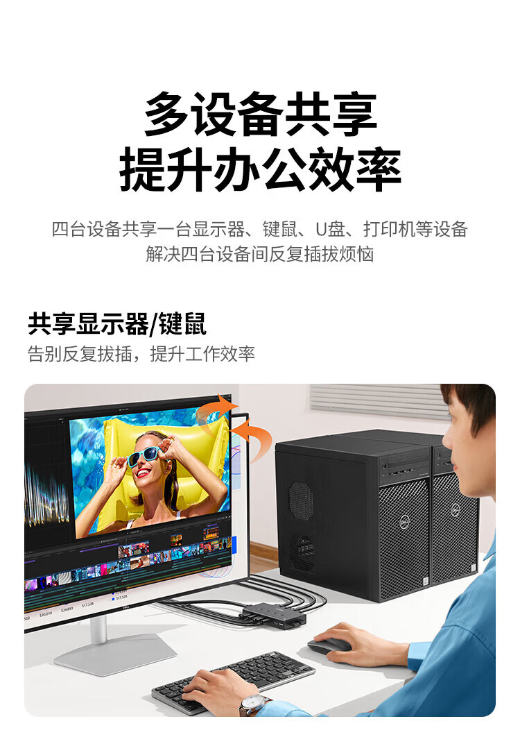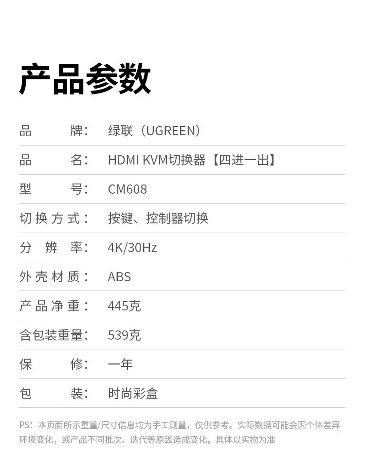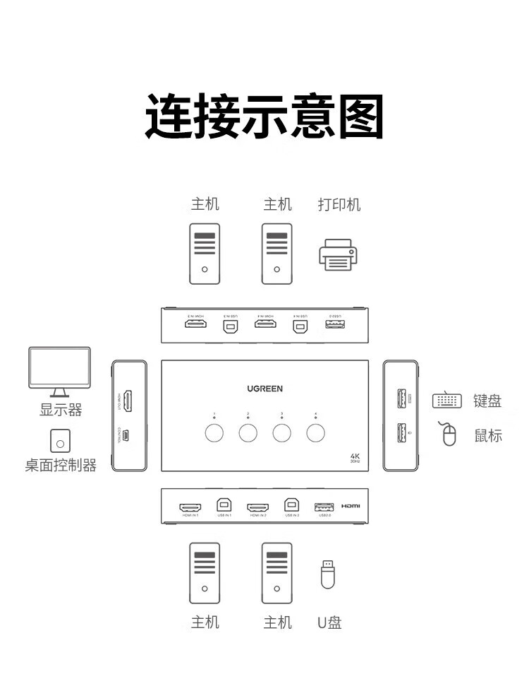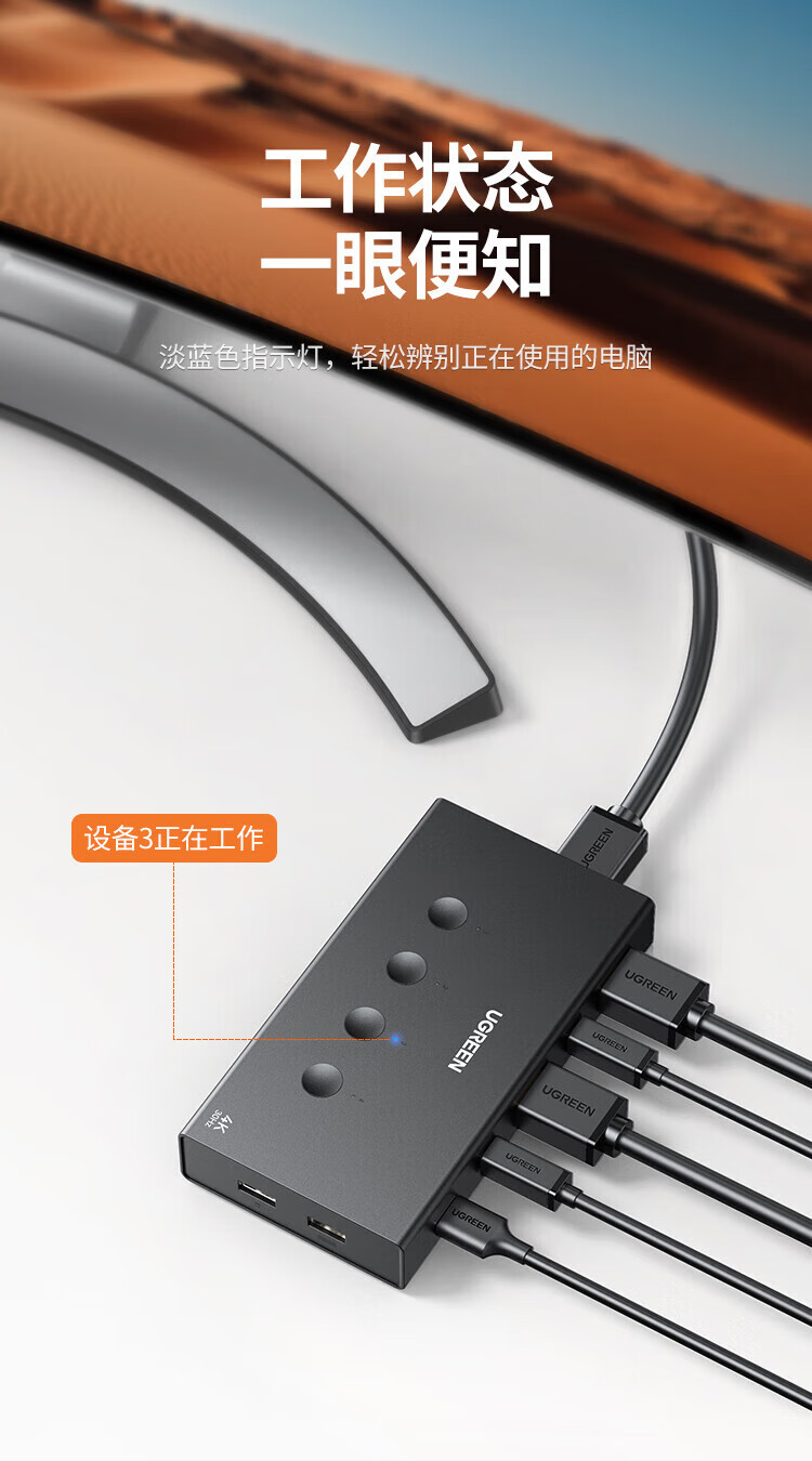 绿联 KVM切换器 CM608/90810 四进一出 1个