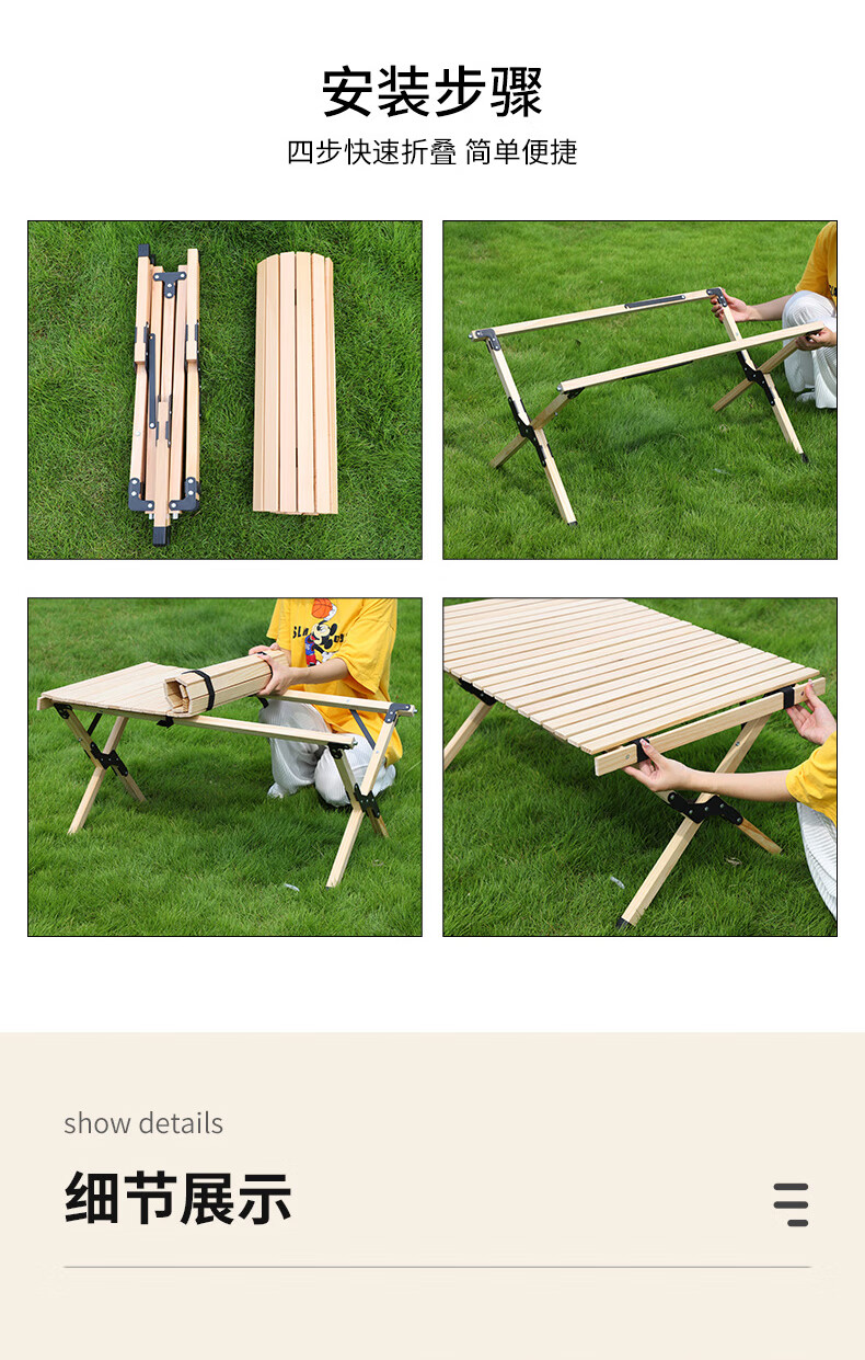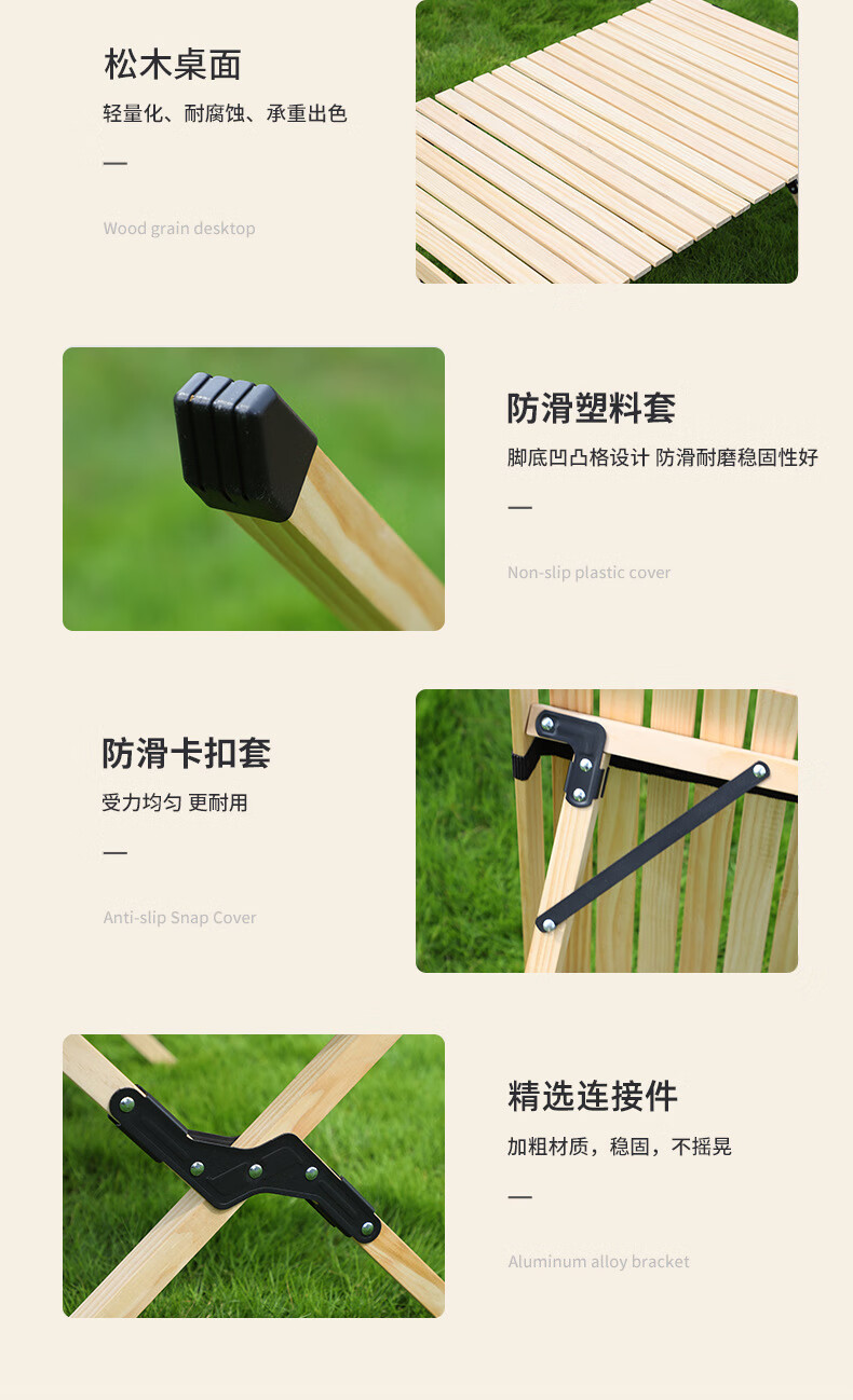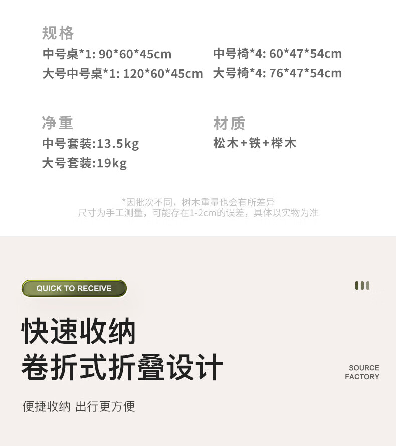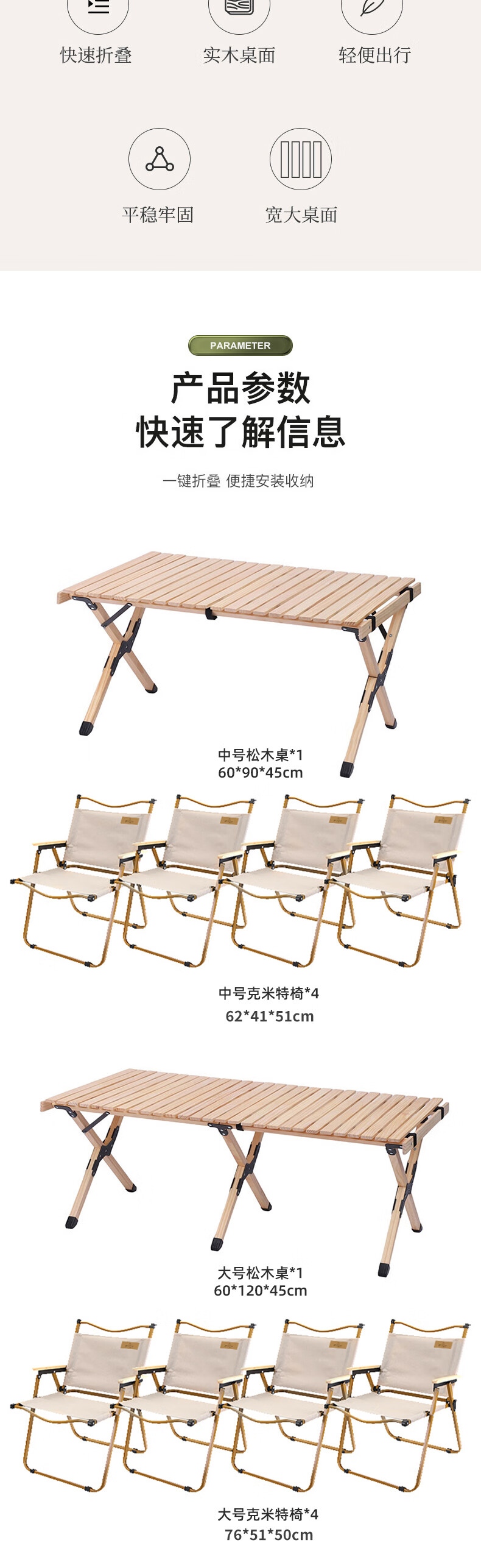 飞图乐 乐原木折叠桌椅五件套 ZDZY0901 原木色 桌子(160*90*45cm)+椅子*4(62*41*51cm)中号 1套