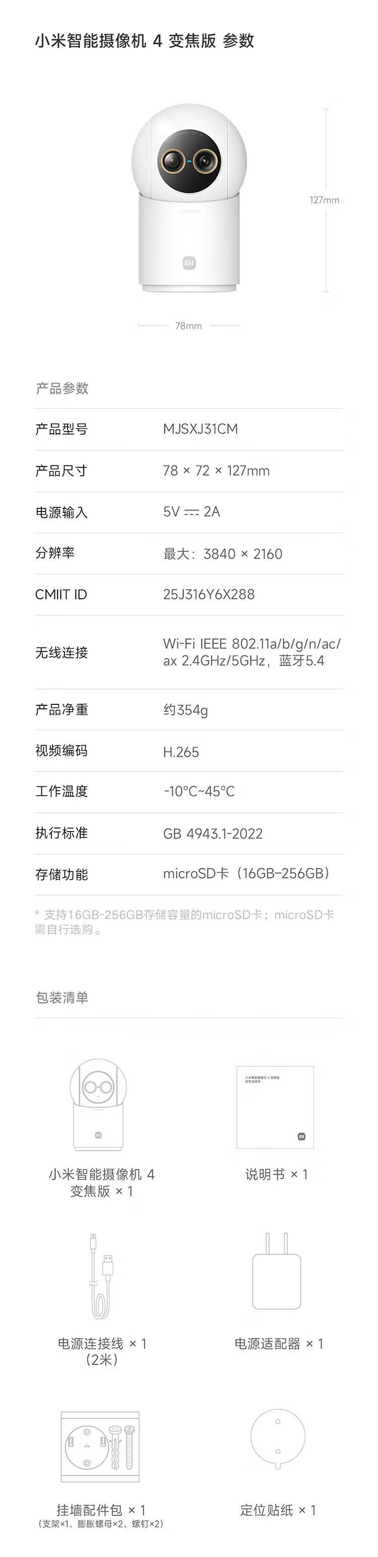 小米 小米摄像机4变焦版 800万像素 1个