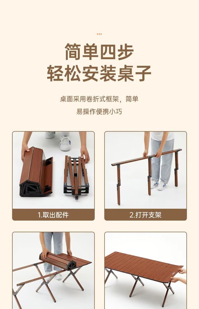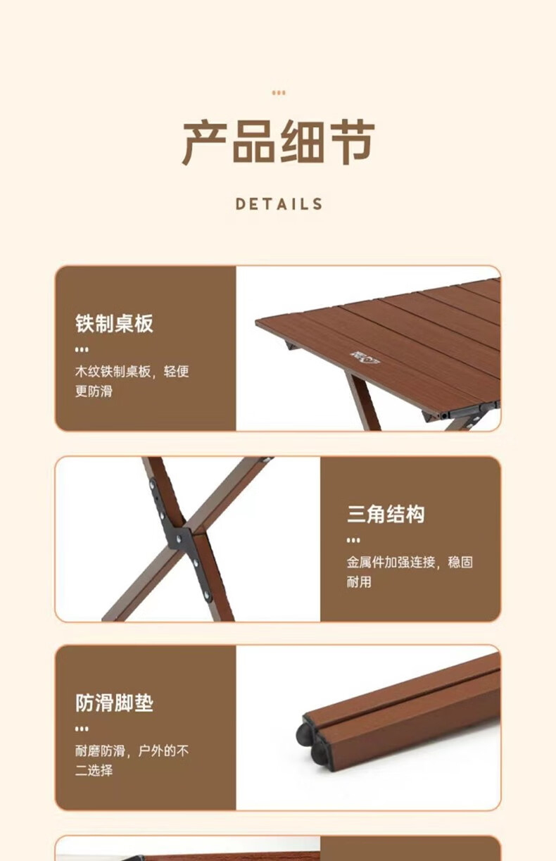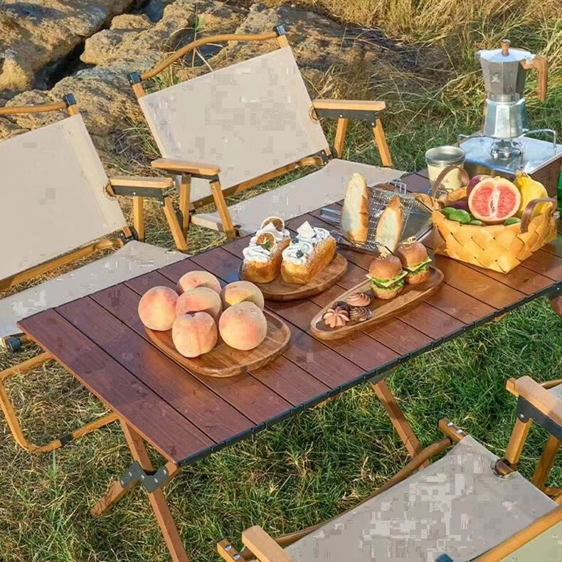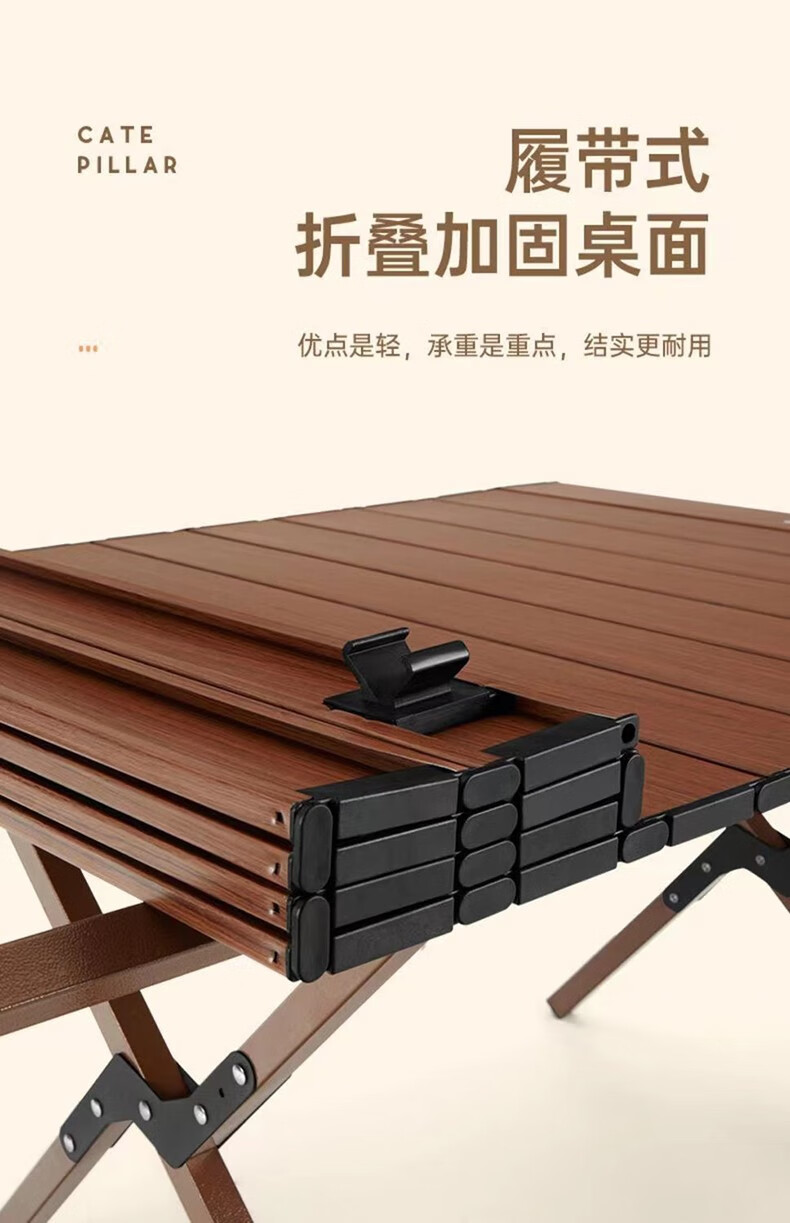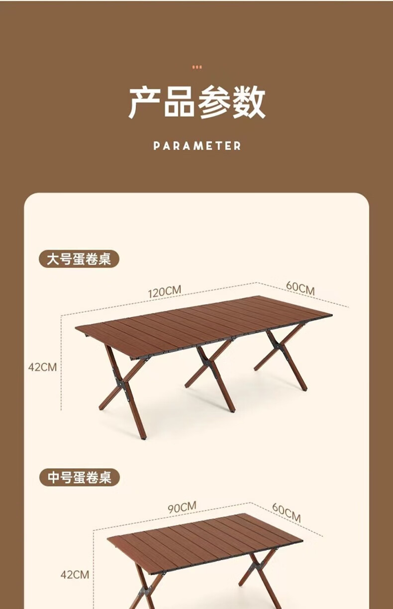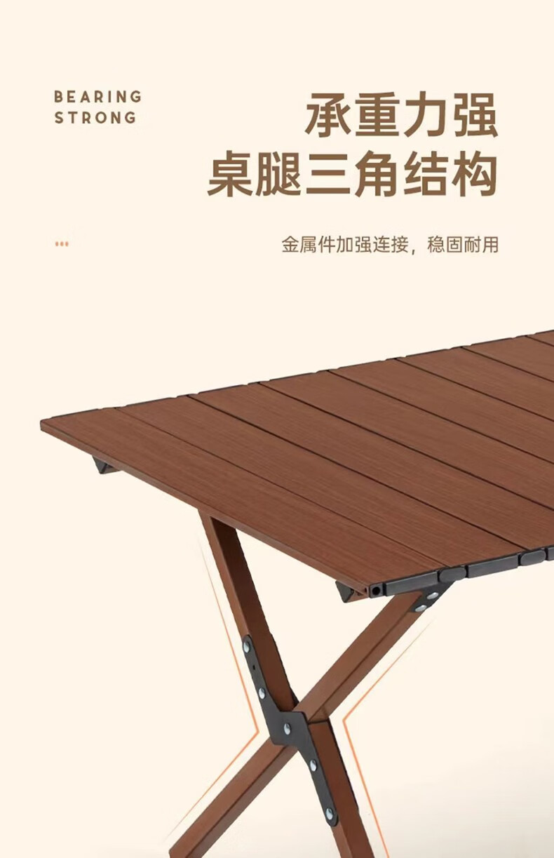 飞图乐 露营折叠蛋卷桌 DJZ0302 胡桃木色 碳钢 120*60*45cm 1个
