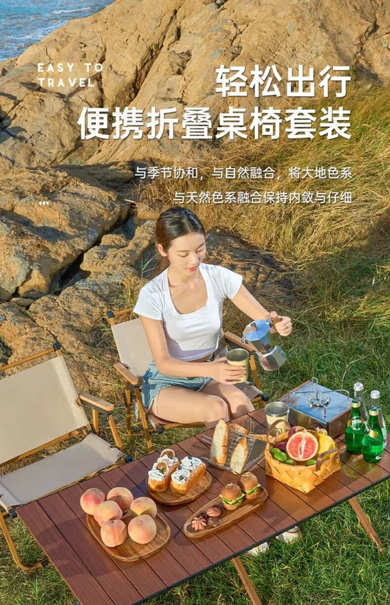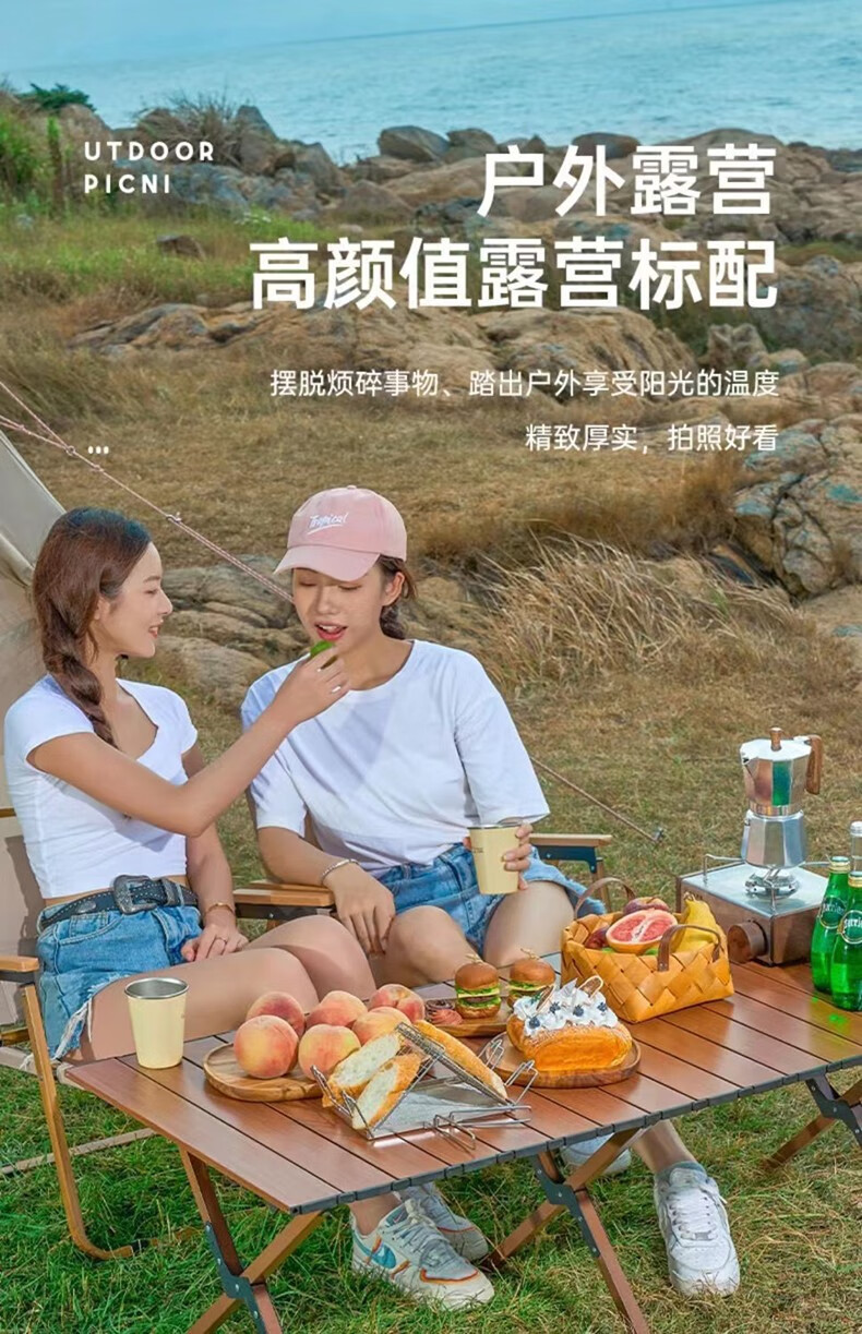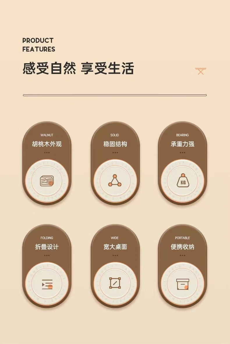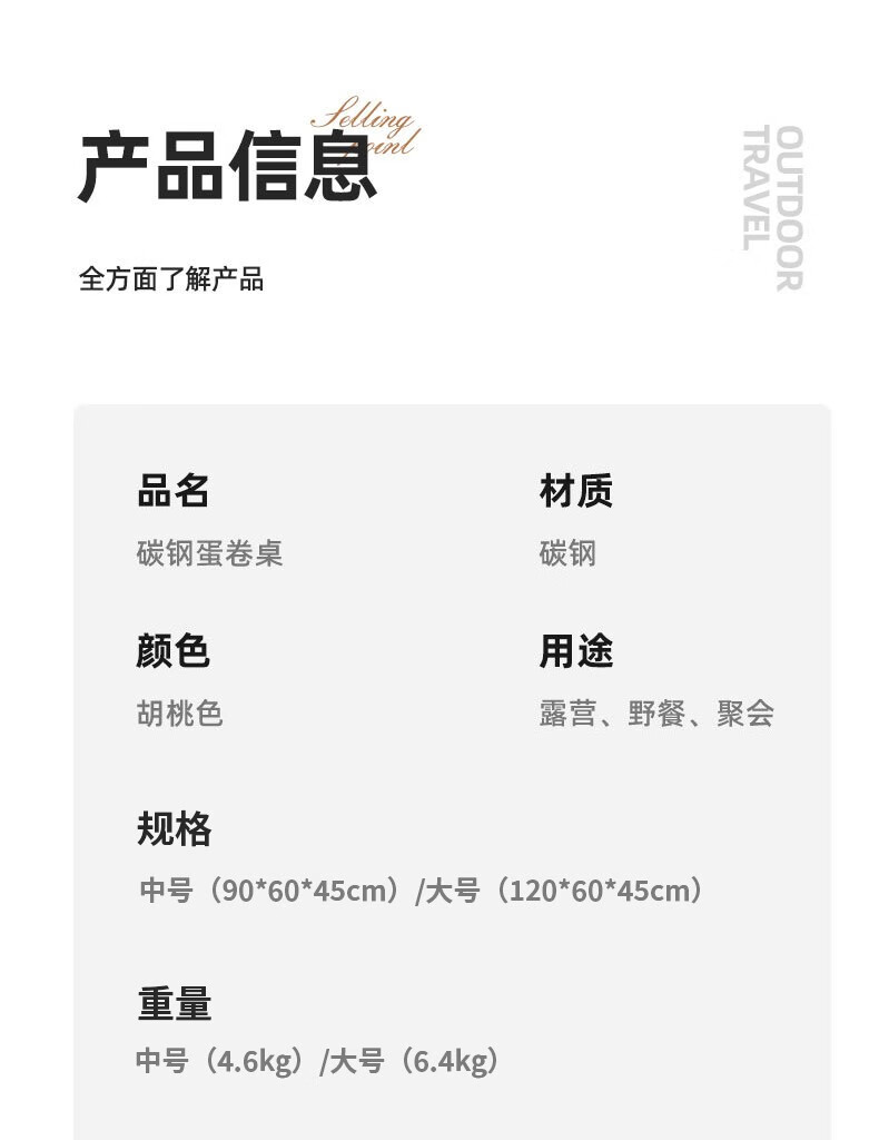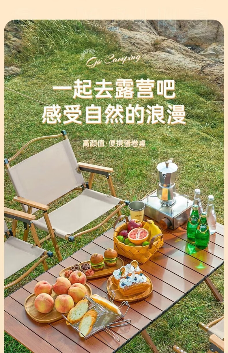 飞图乐 露营折叠蛋卷桌 DJZ0302 胡桃木色 碳钢 120*60*45cm 1个
