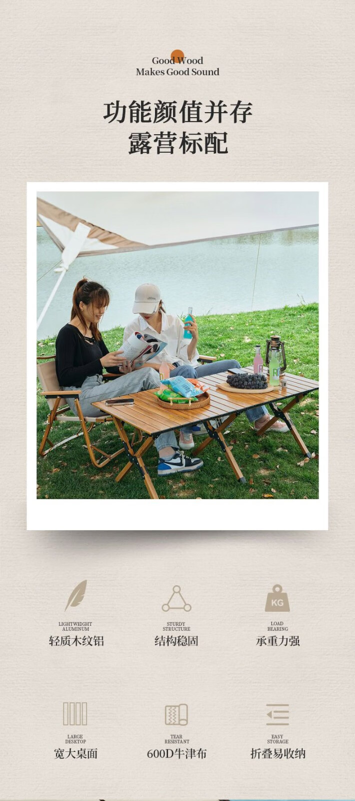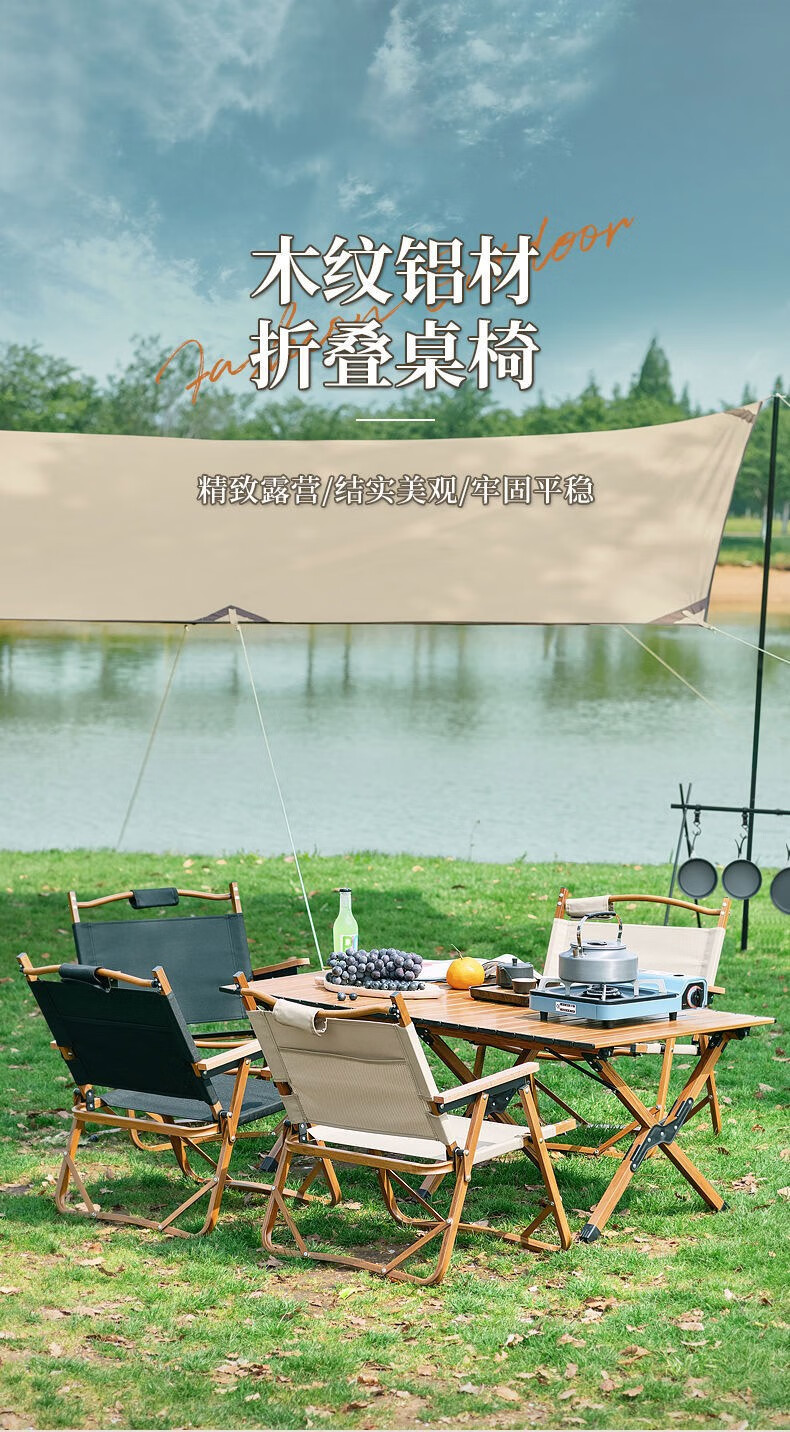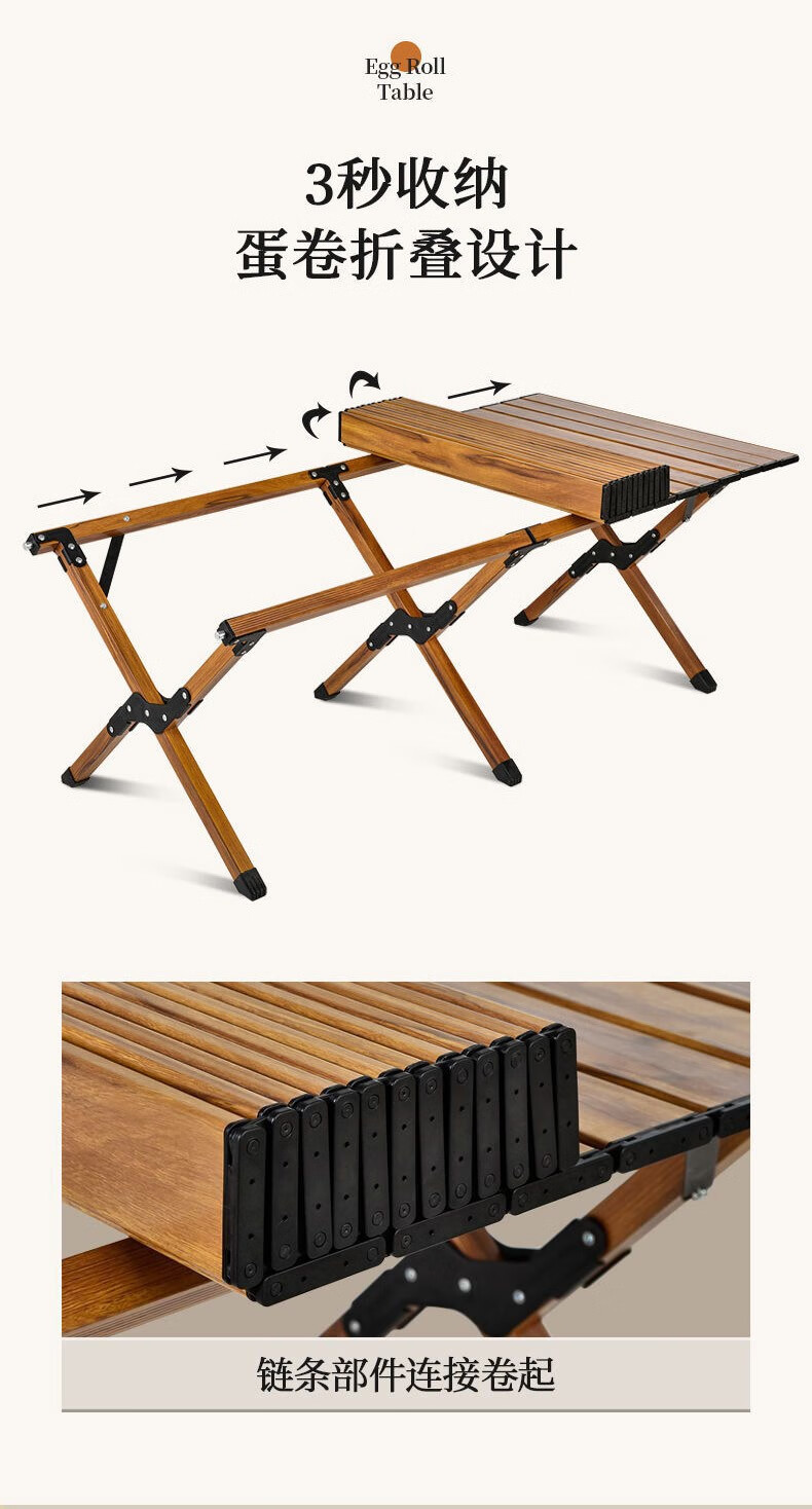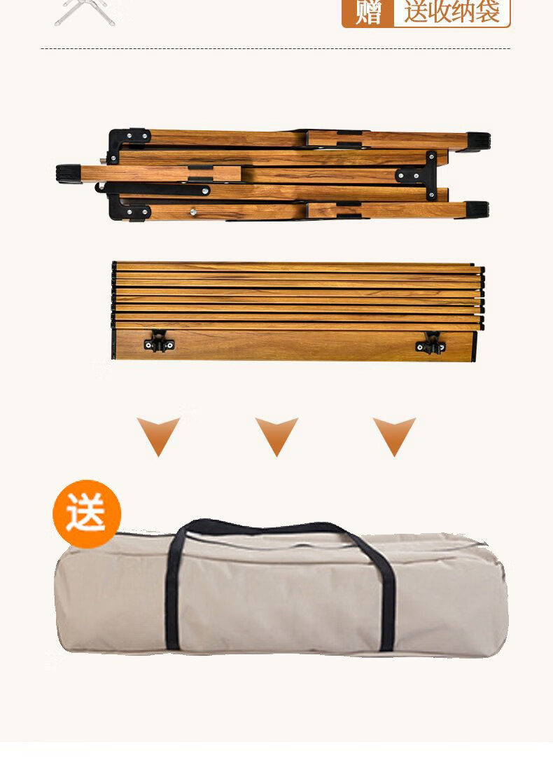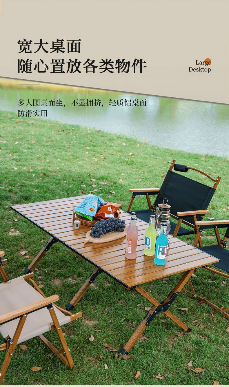 飞图乐 露营蛋卷桌 DJZ0401 黄木纹 铝合金 87*60*45cm 1个
