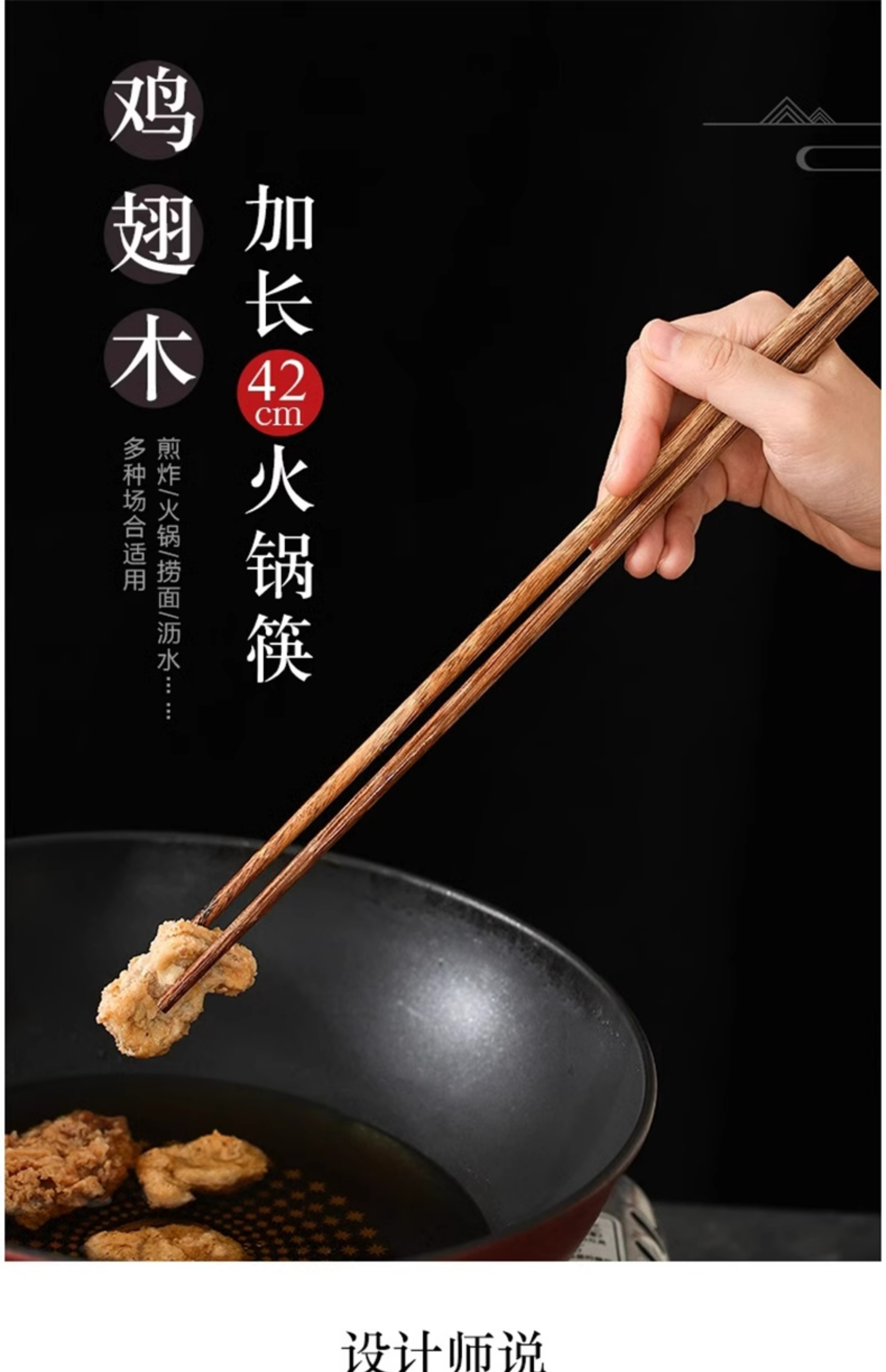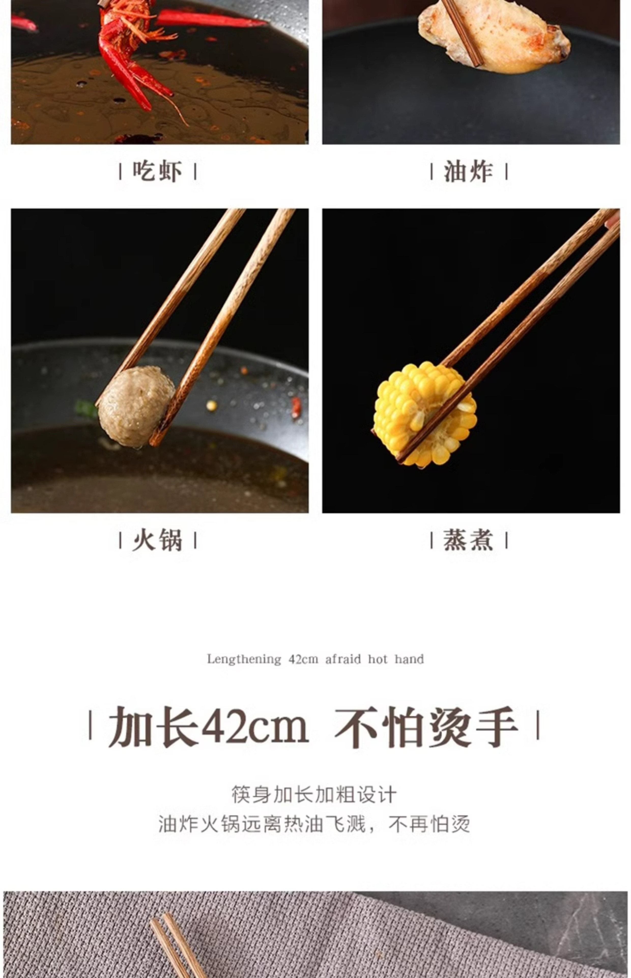 国产通用 油炸耐高温长筷子 木质42cm 1双
