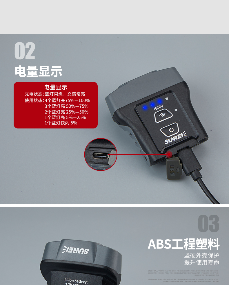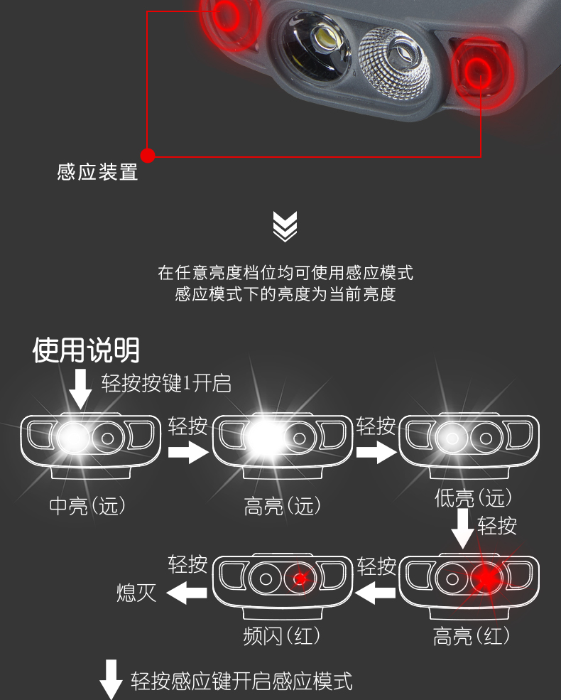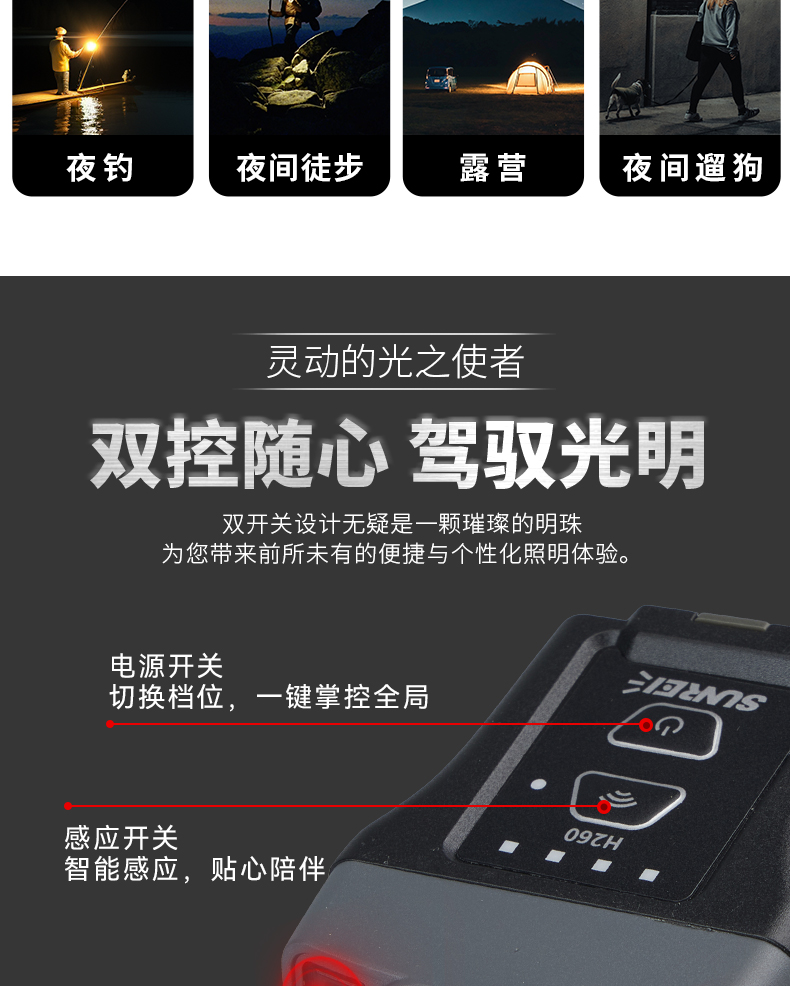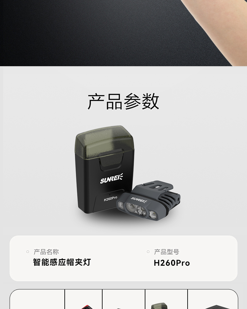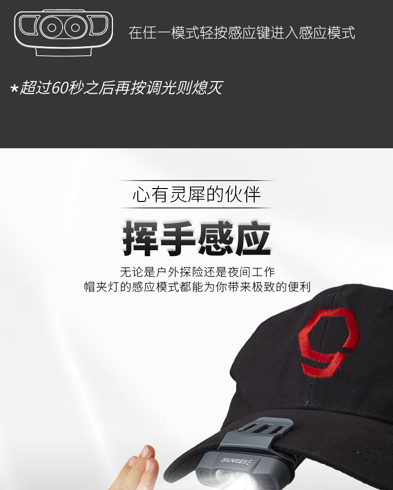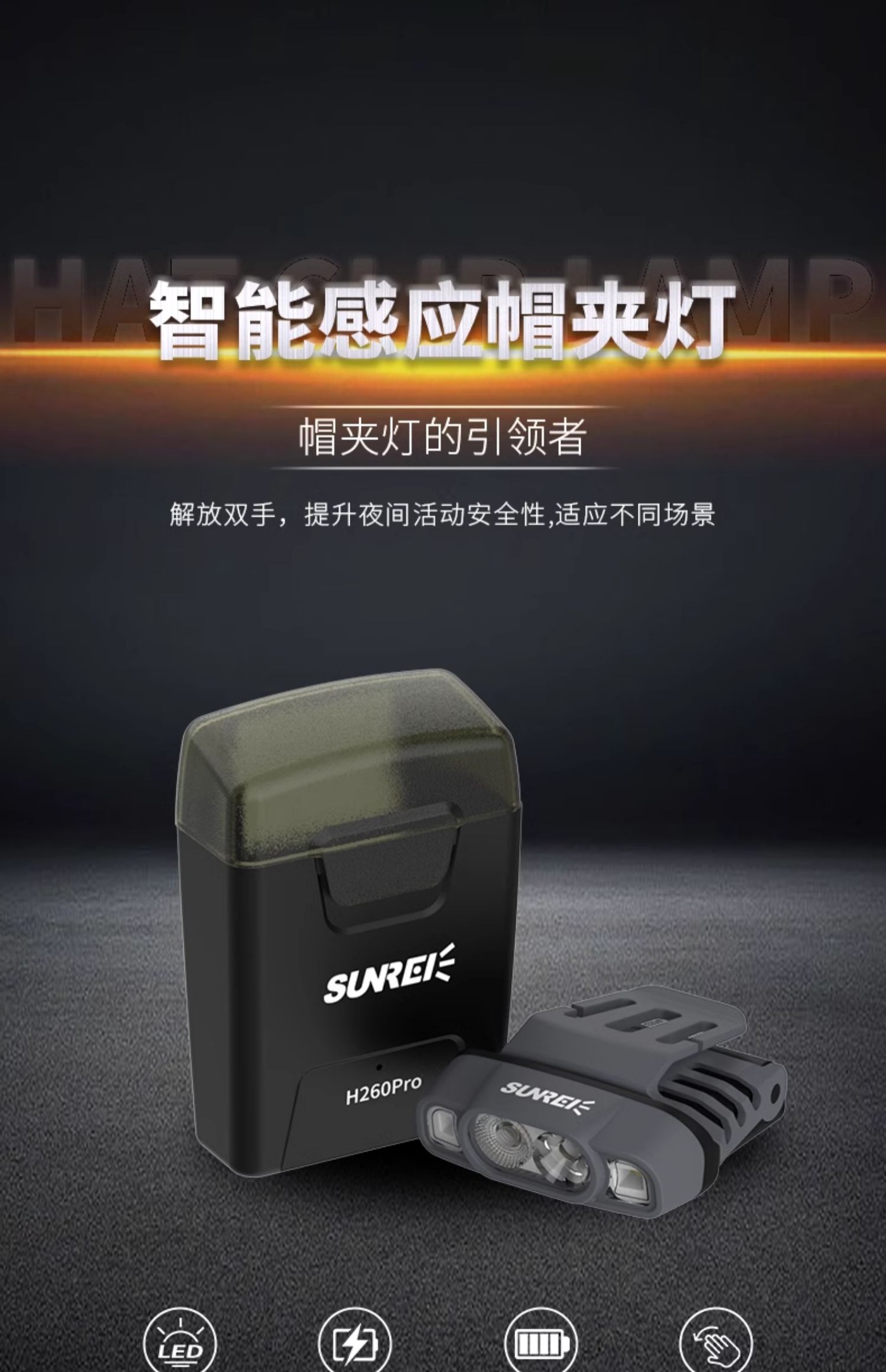 山力士 智能感应帽夹灯 H260pro 岩石灰 1个