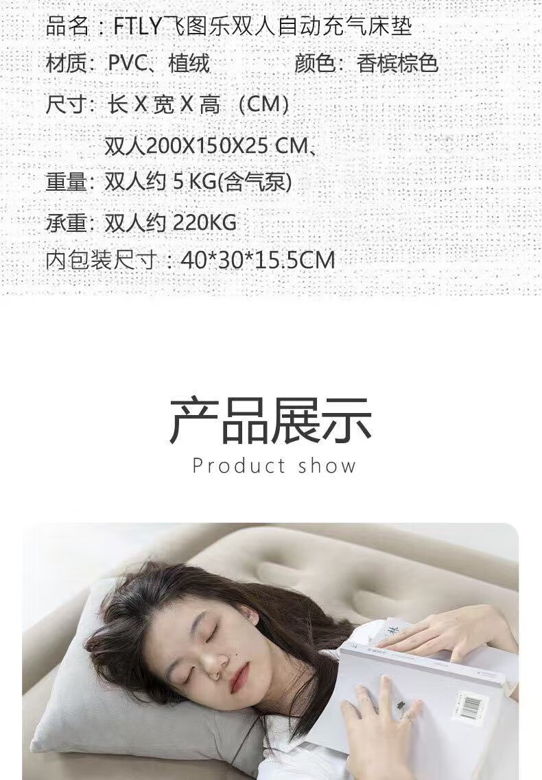 飞图乐 户外双人自动充气床垫套装 CQCD202 香槟棕色 200×150×25cm PVC植绒 1个