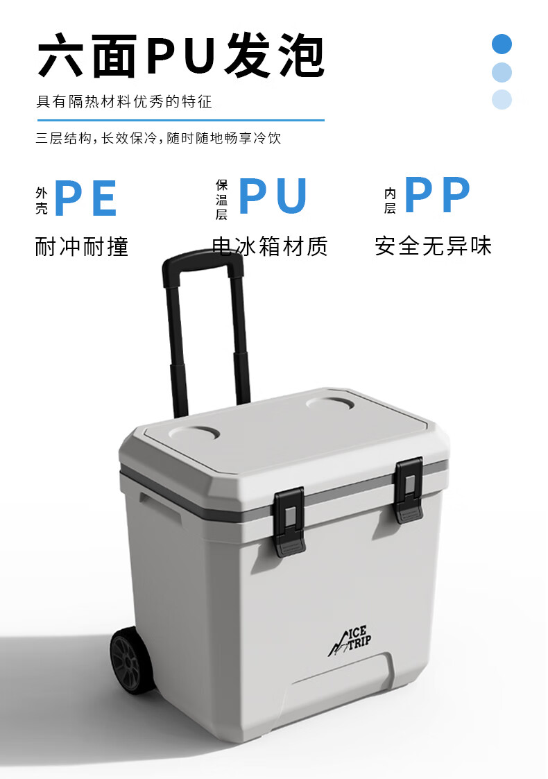 冰途 便携式拉杆带轮保温箱 40L 加厚黑色 1个