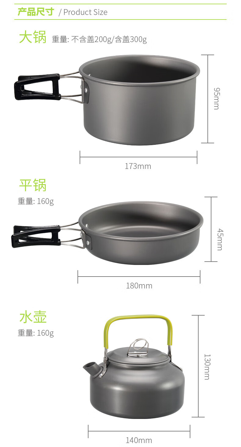 大号锅+中号锅+煎锅+水壶+碗勺配件