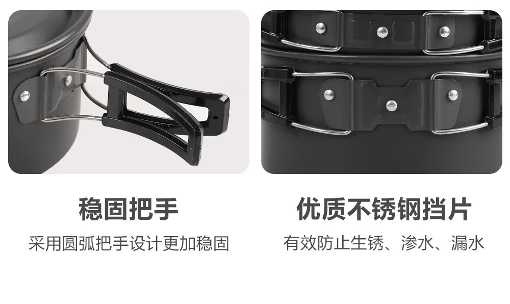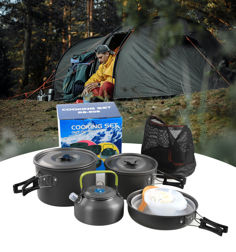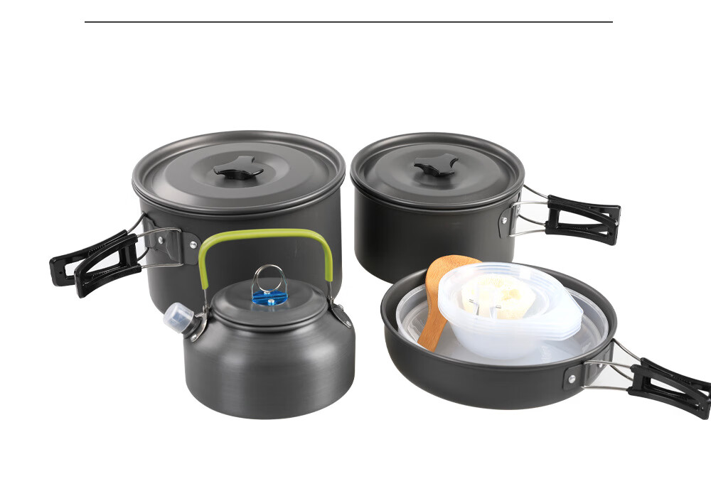 飞图乐 户外锅具套装 GJTZ01 哑光灰 大号锅+中号锅+煎锅+水壶+碗勺配件 1套