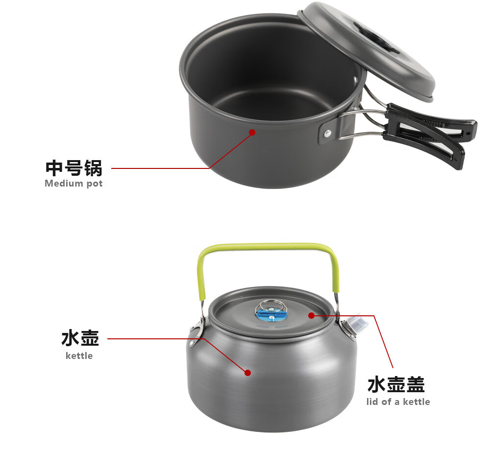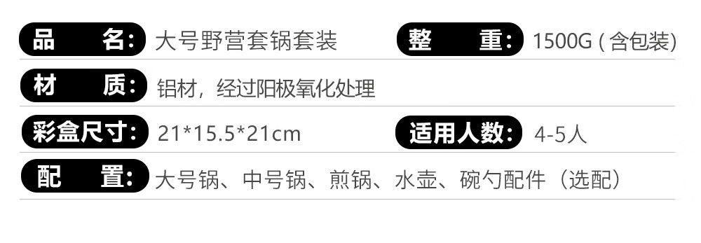 大号锅+中号锅+煎锅+水壶+碗勺配件