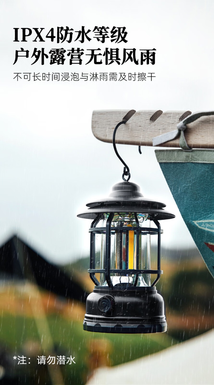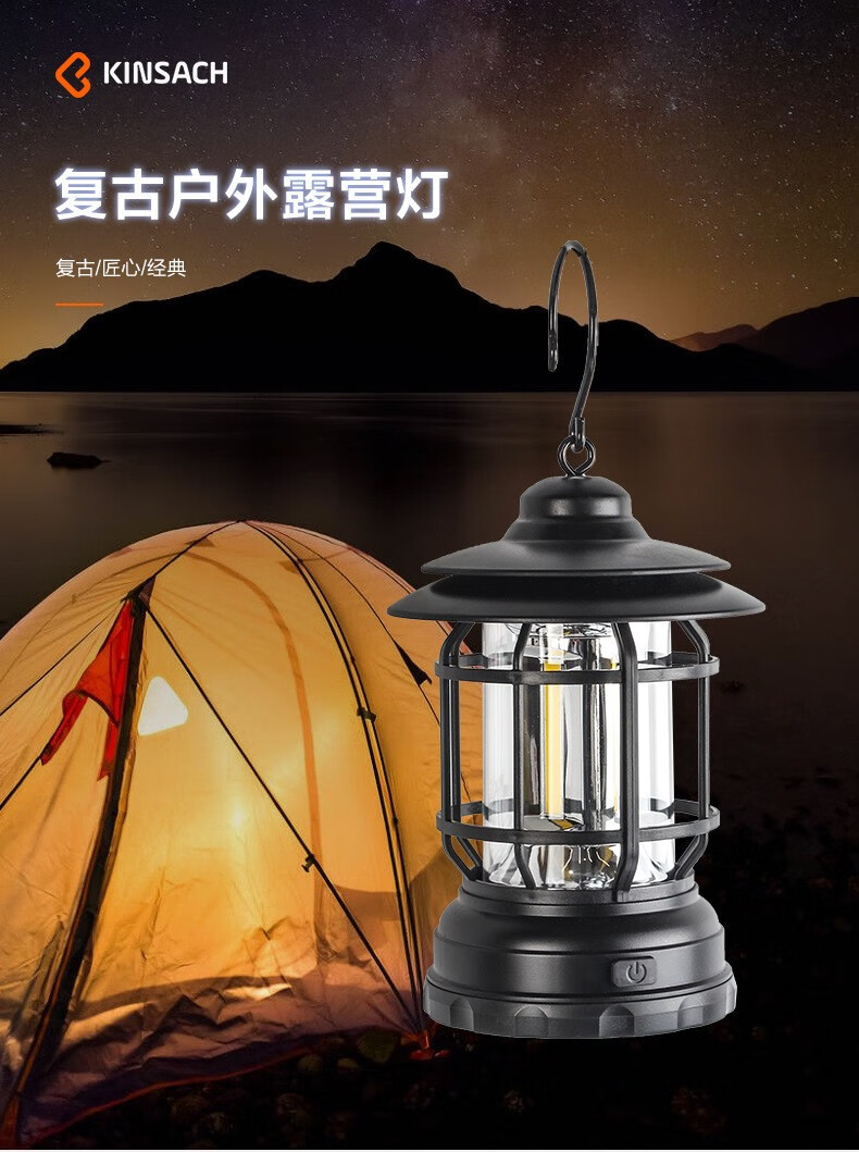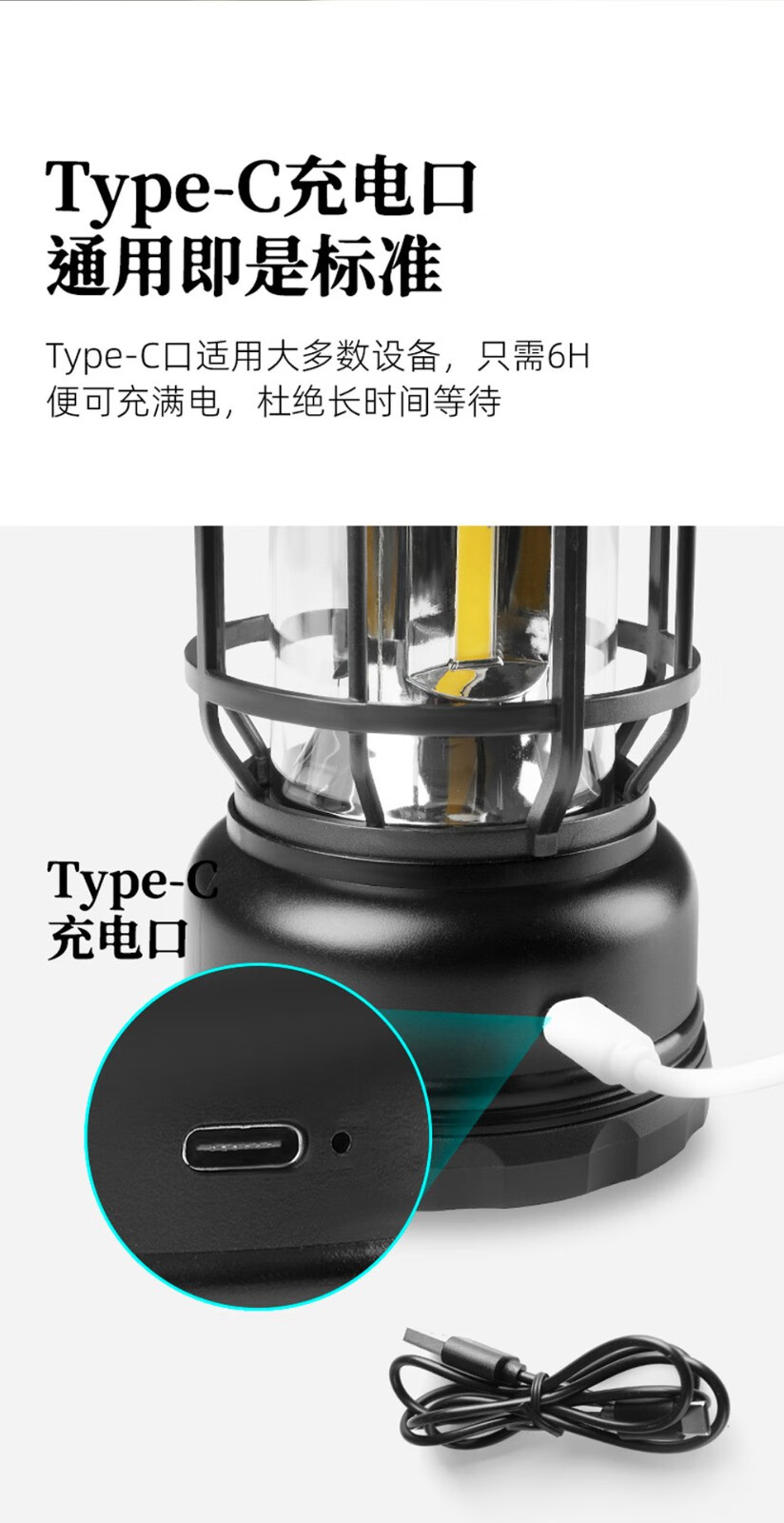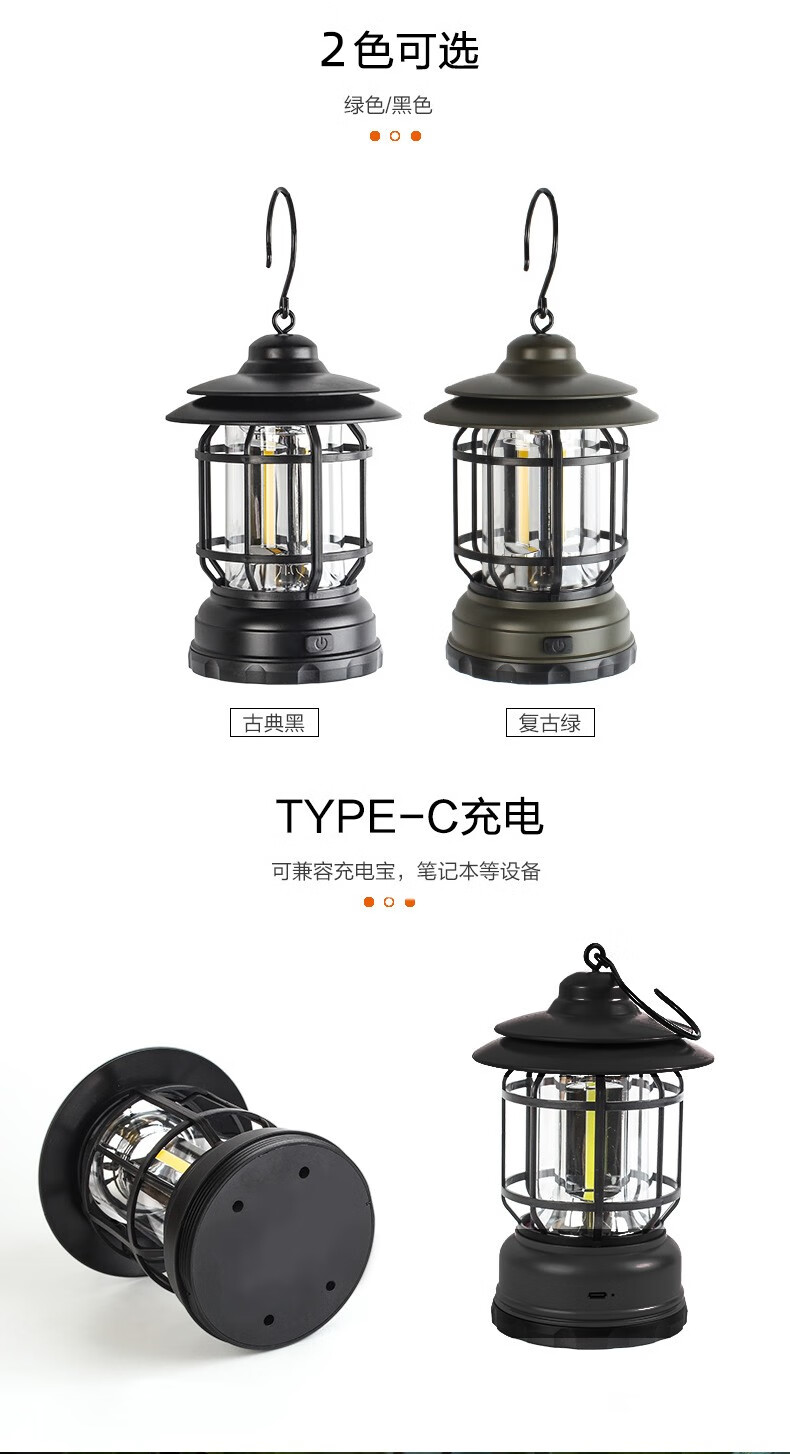 飞图乐 户外充电帐篷灯 LYD0102 曜石黑 14500锂电池 -TYPE-C充电 1个