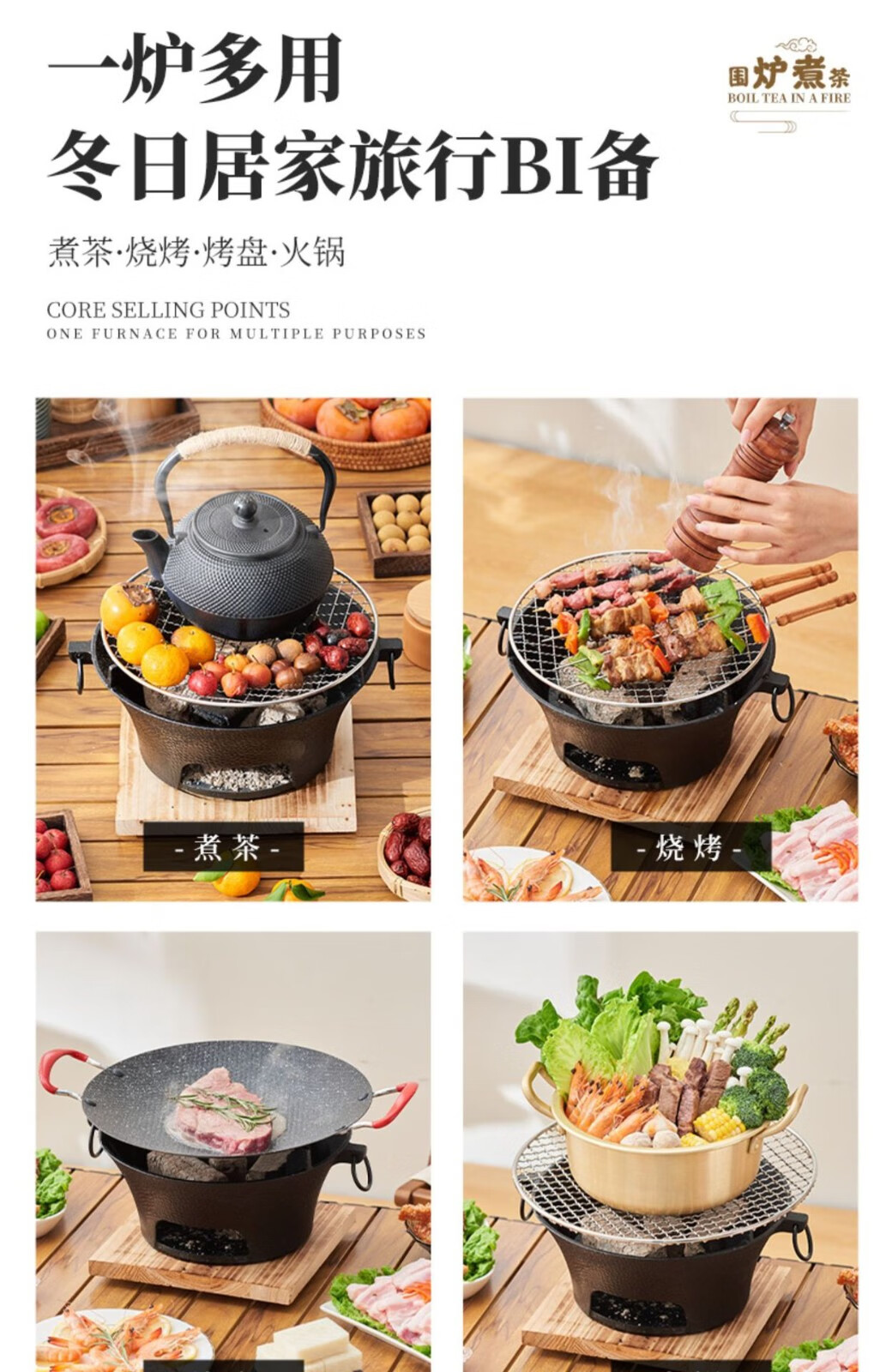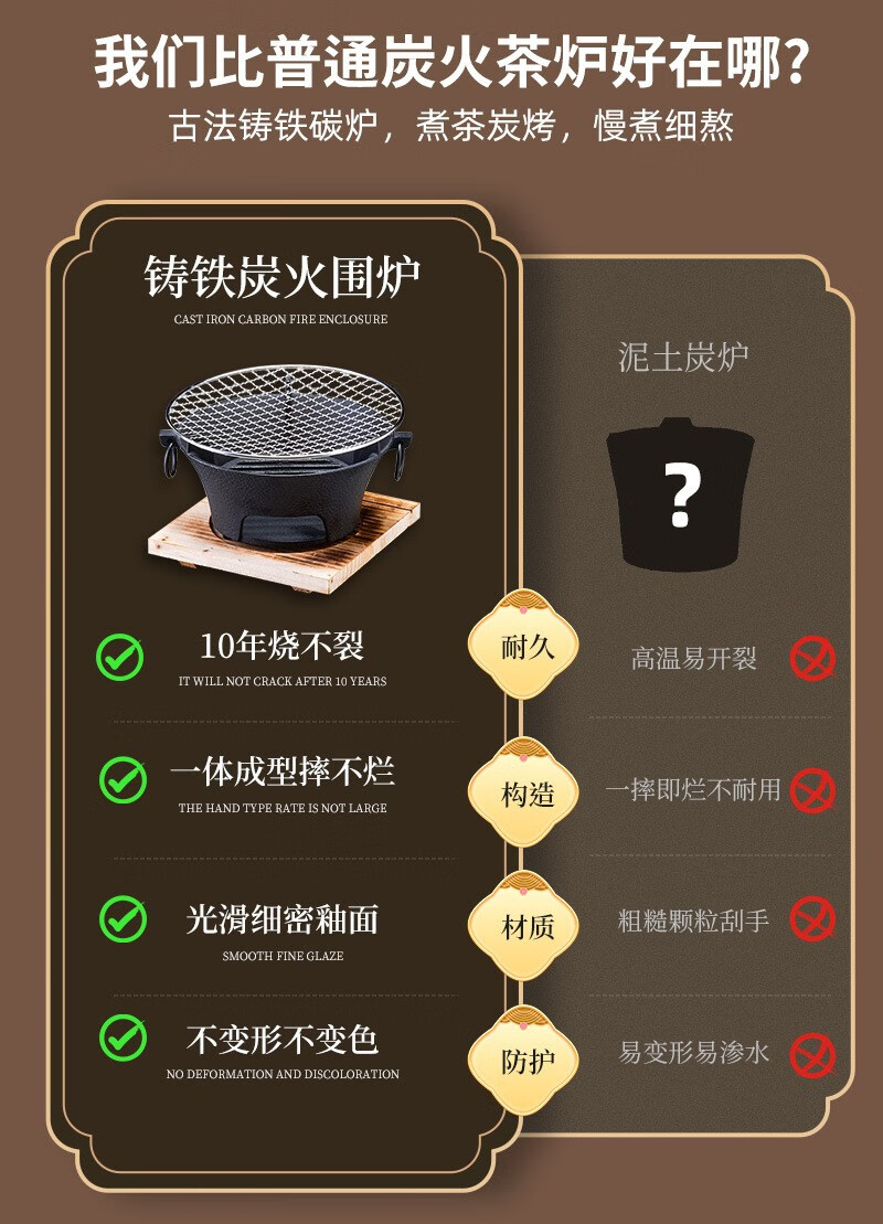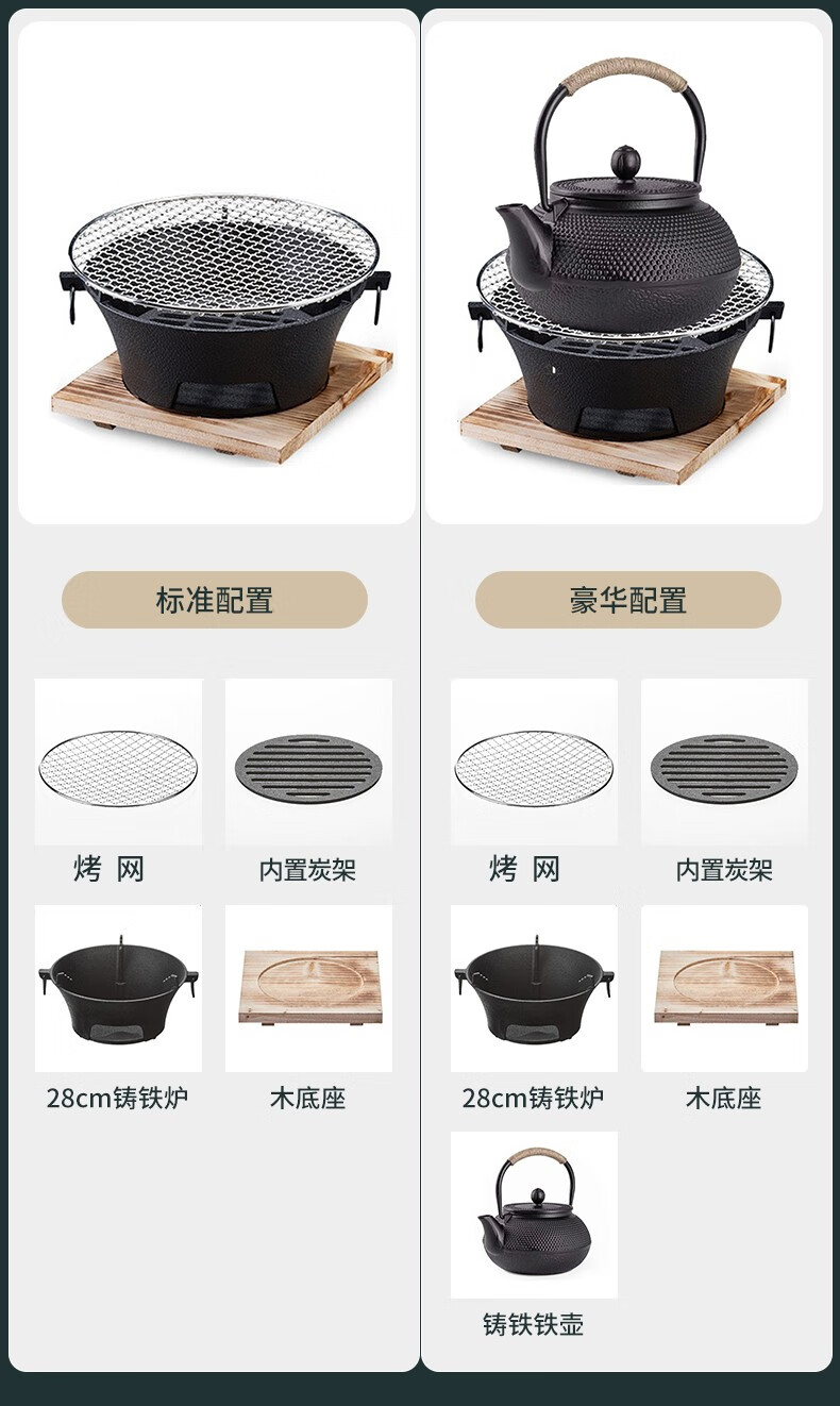 飞图乐 经典铸铁大号围炉套装 豪华款 WLTZ0102 黑色 烧炭炉 1套
