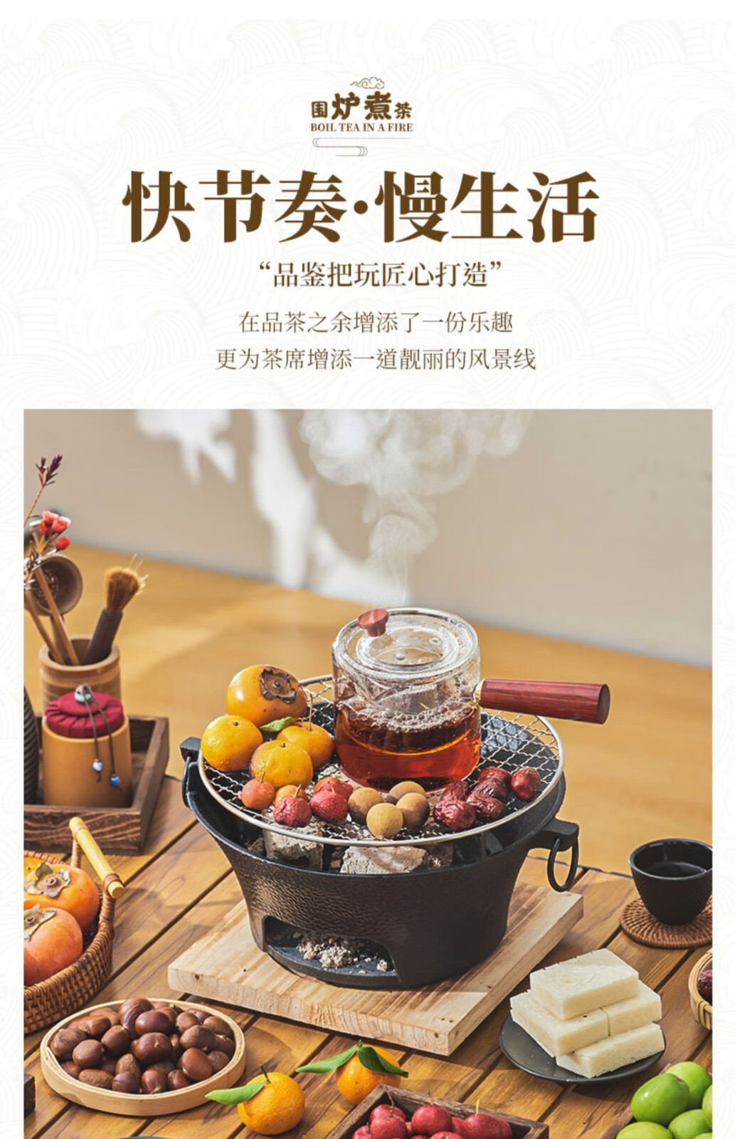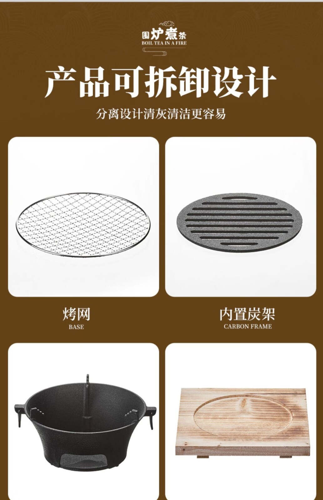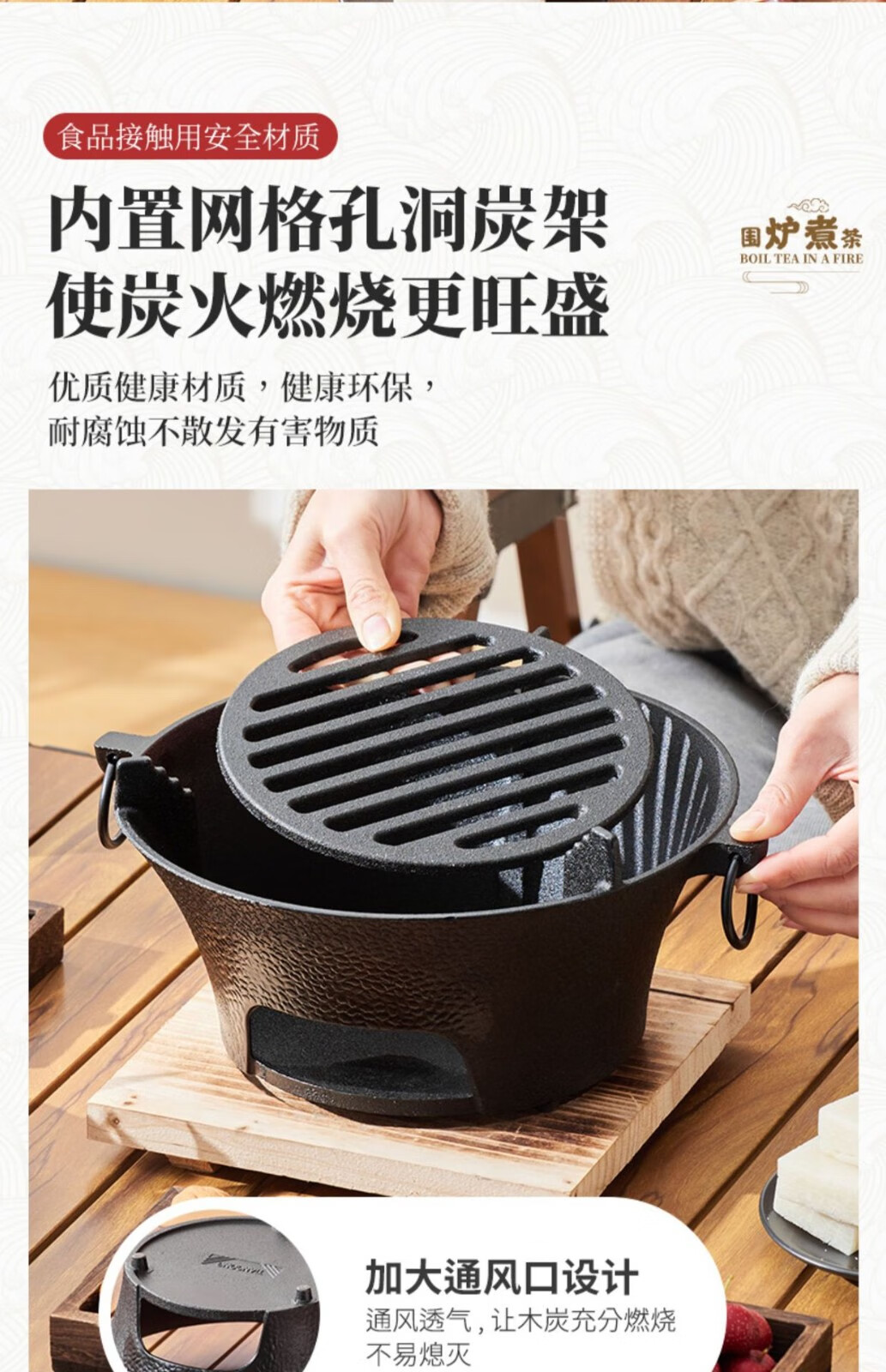 飞图乐 经典铸铁大号围炉套装 豪华款 WLTZ0102 黑色 烧炭炉 1套