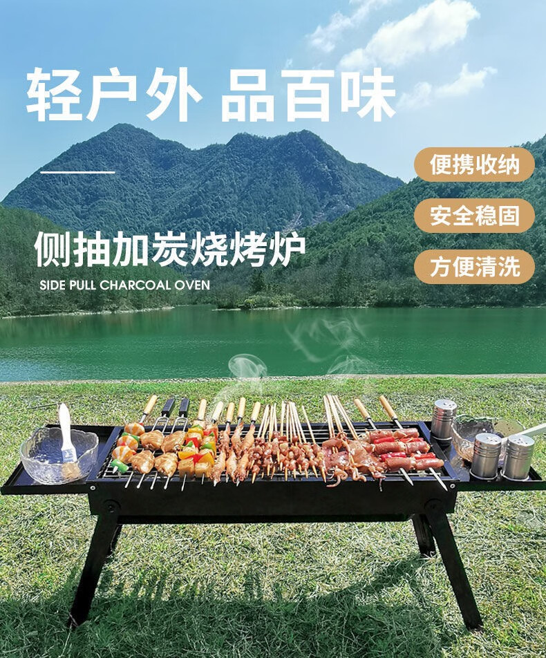 飞图乐 升级带隔板侧抽式烧烤架 SKJ0102 88*32*22.5cm 1台