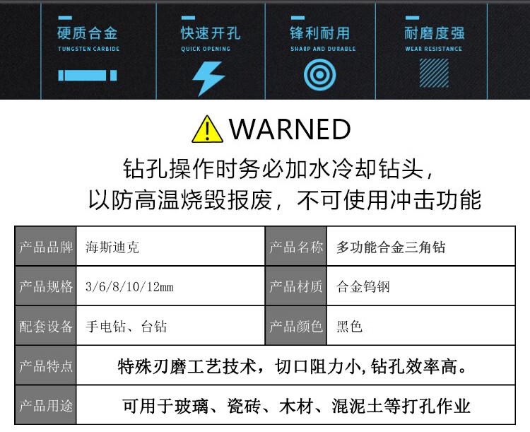 海斯迪克 陶瓷三角钻头 KK49-3 8mm 1个