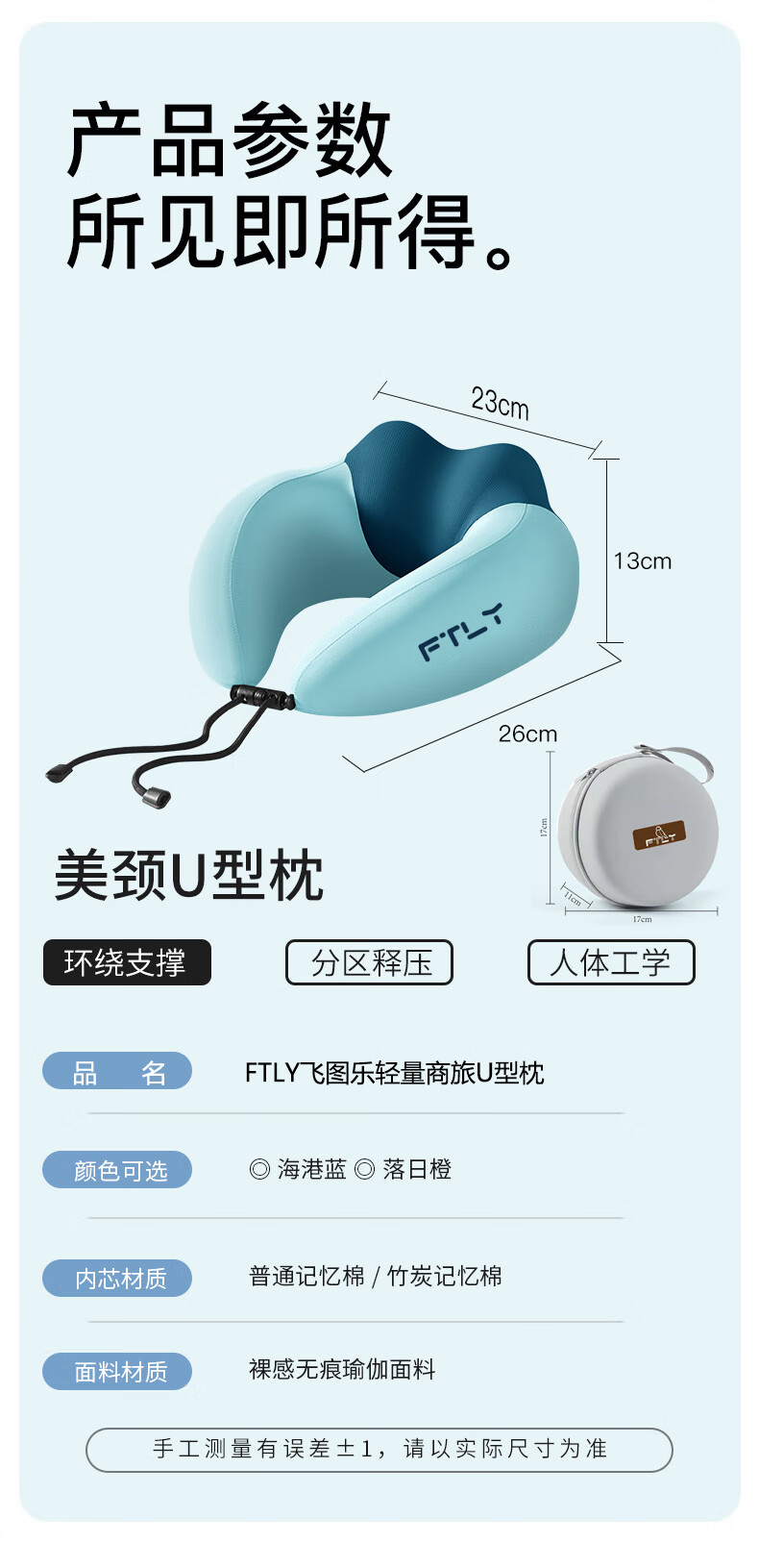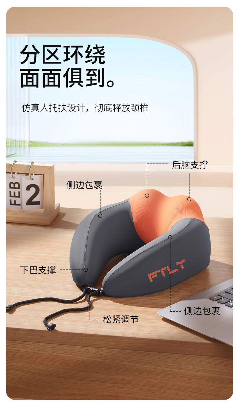 飞图乐 轻量商旅U型枕 UXZ0802 落日橙 U型枕+收纳盒 1个