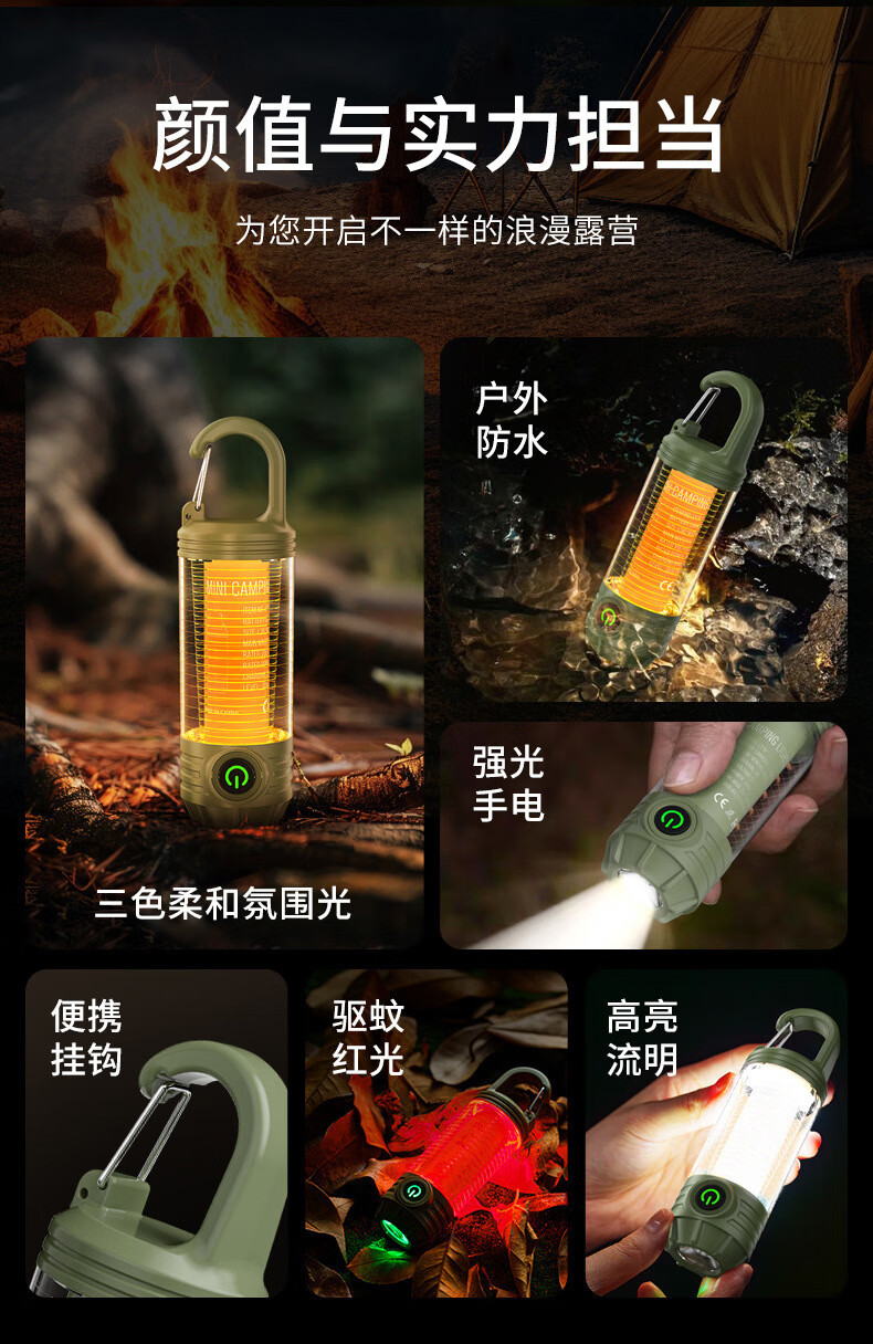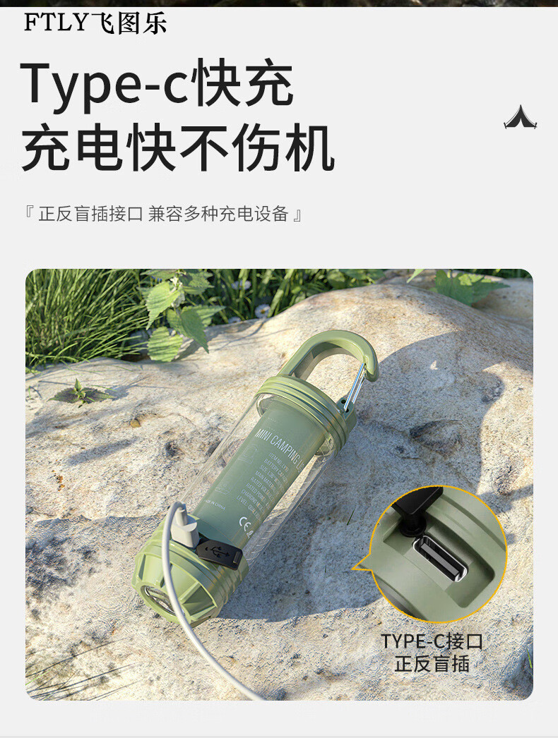 飞图乐 户外手电露营灯 LYD0301 卡其色 1200mAh锂电池 -TYPE-C充电 1个