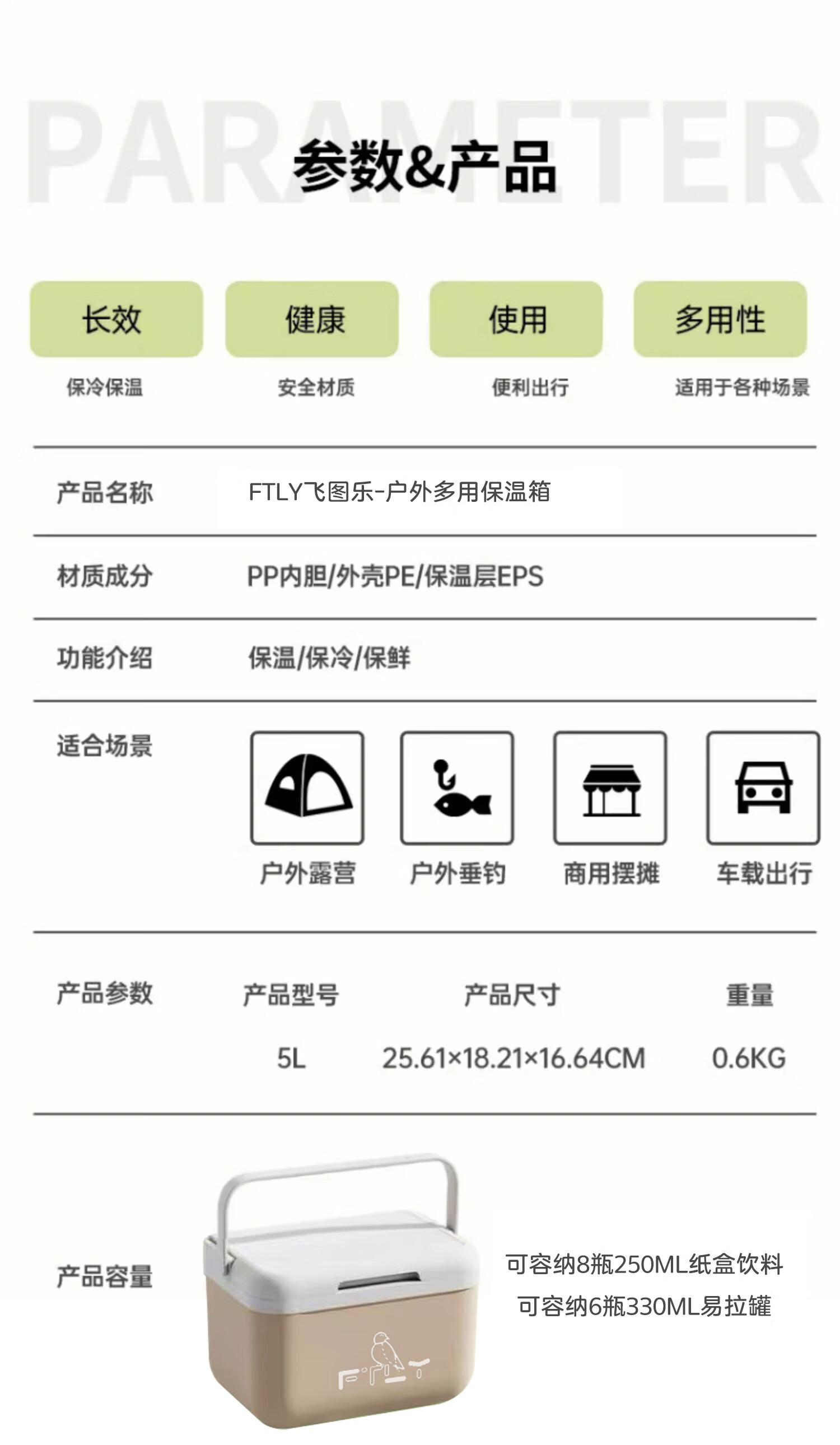 飞图乐 露营保温箱冷藏箱 BWX0001 卡其 25.6*18.2*16.6cm 1个