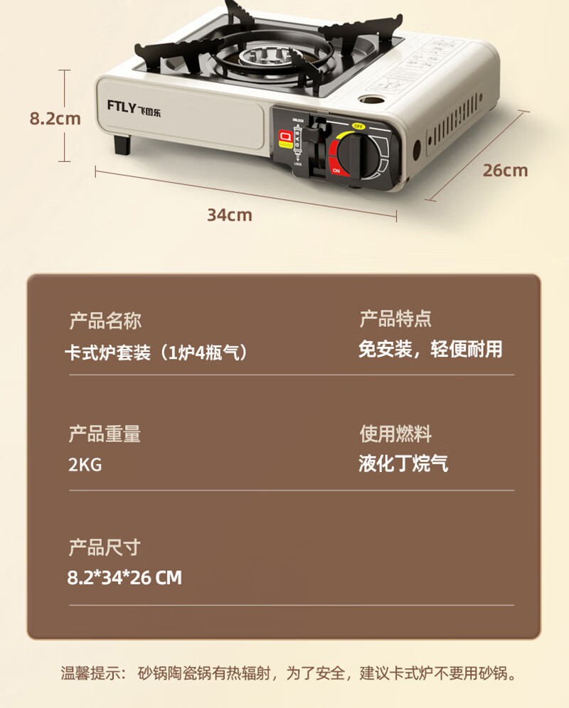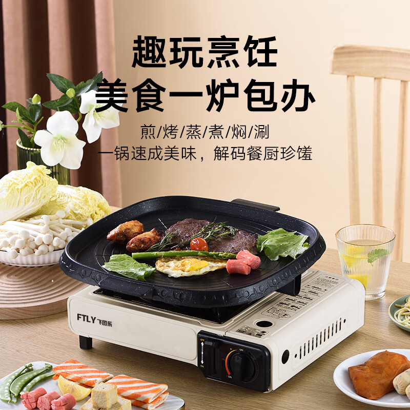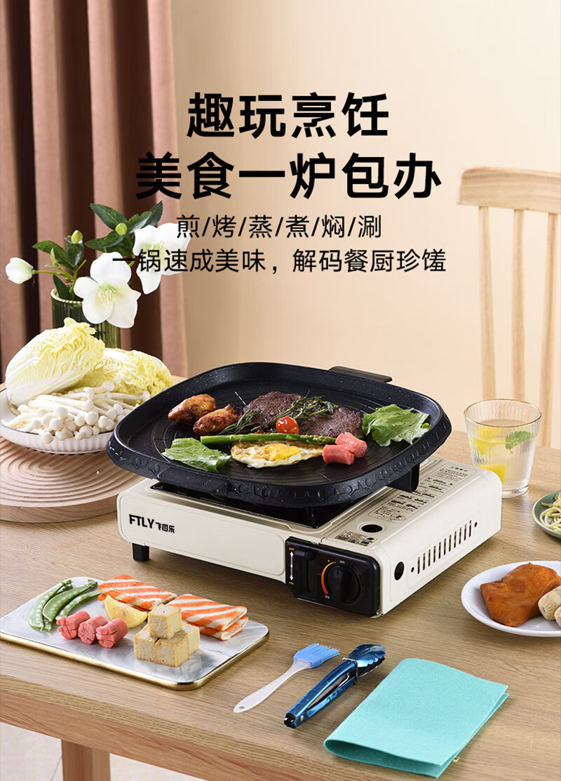 飞图乐 户外卡式炉烧烤套装 KSL02 卡式炉+4瓶丁烷气+麦饭石烤盘 1套