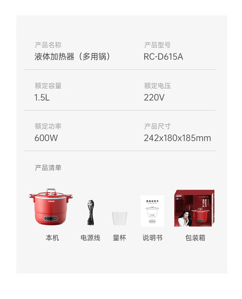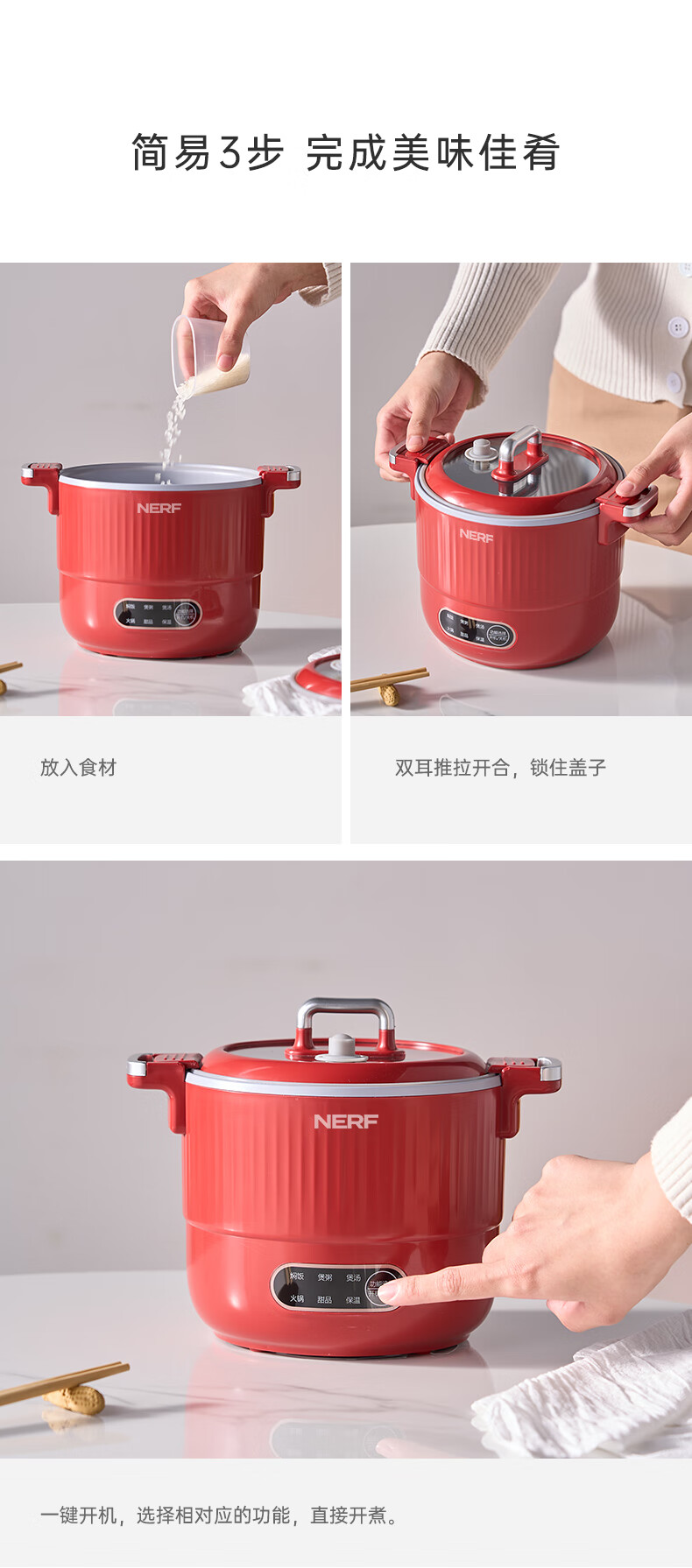 NERF 多功能微压锅 RC-D615A 红色 600W 1.5L 1个